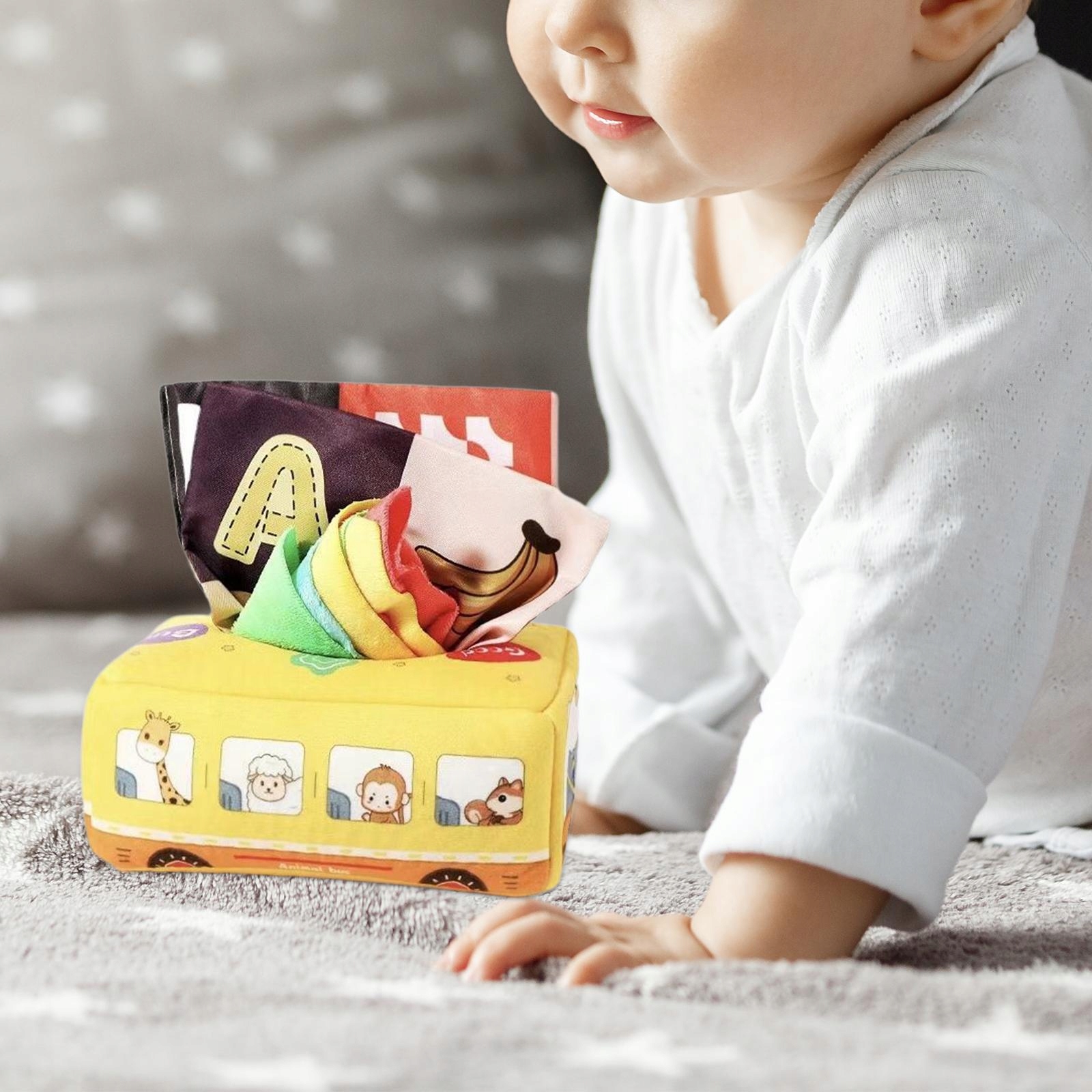 Sensory Toy: Наша очаровательная игрушка в форме коробки для носовых платков, наполненных «носовыми платками» в разных цветах, может поддерживать развитие моторных навыков ваших маленьких детей.