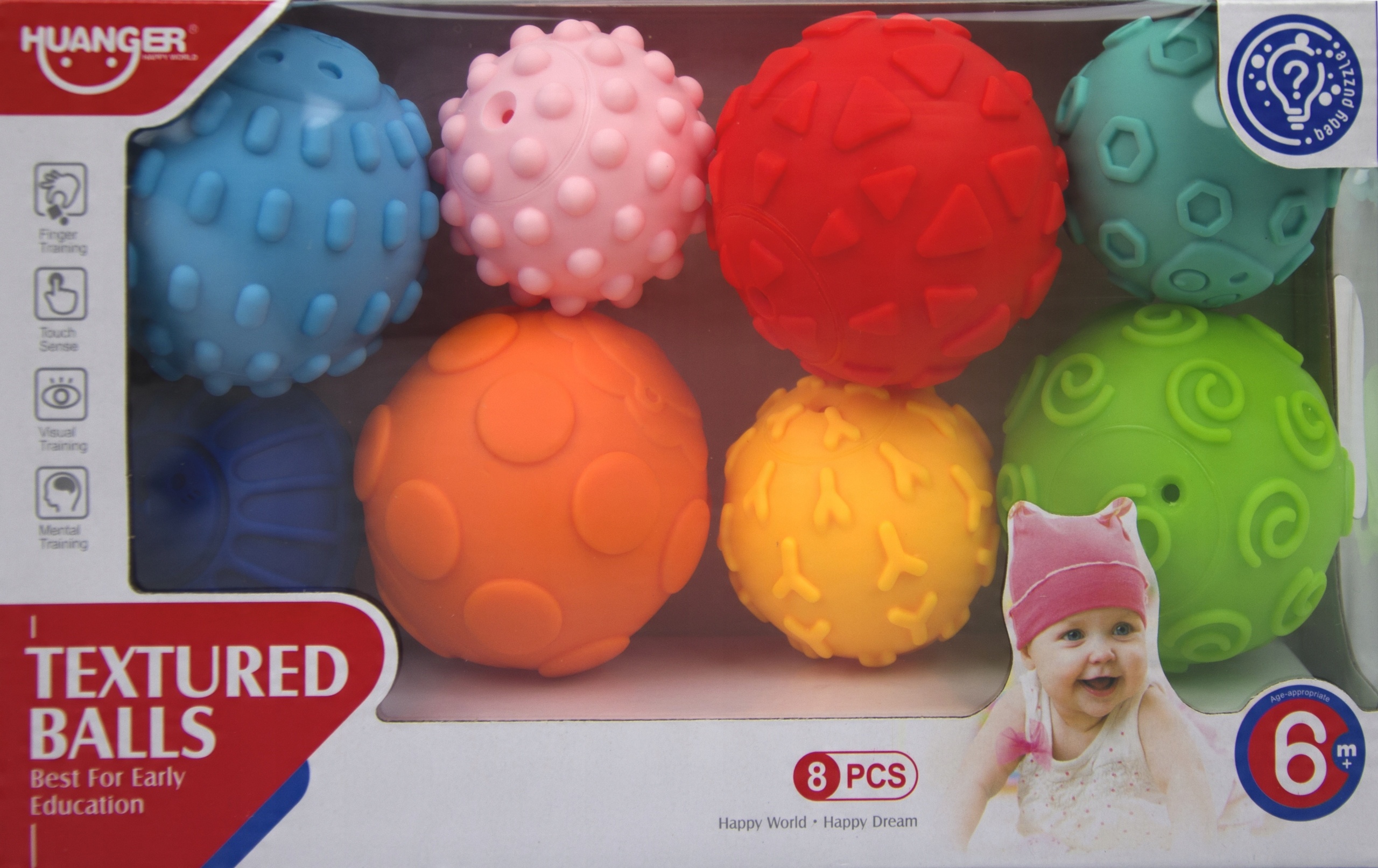Игрушка развивает координацию движений ребенка и стимулирует чувства. Сенсорные шарики формируют и поддерживают моторное развитие, координацию движений и, в частности, облегчают обучение хватанию. Материал, из которого они изготовлены, устойчив к деформации, имеет разнообразные цвета и текстуры, что позволяет их легко раздавливать, бросать, хватать и кусать.