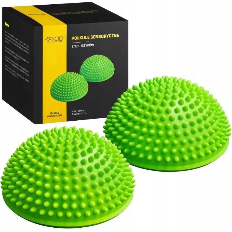 Сенсорные полушария 4FIZJO с шипами являются очень полезным оборудованием во время реабилитации стопы, тренировки координации движений, а также для улучшения способности сохранять равновесие. Конические шипы, расположенные на полушариях, стимулируют кожу и подкожную клетчатку. В комплект входят 2 полусферы из ПВХ.