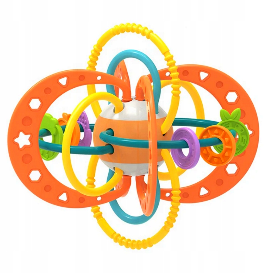 Игрушка выглядит как планета, со многими орбитами вокруг вас. Кольца цветных ободов , которые можно схватить, сжать и укусить .