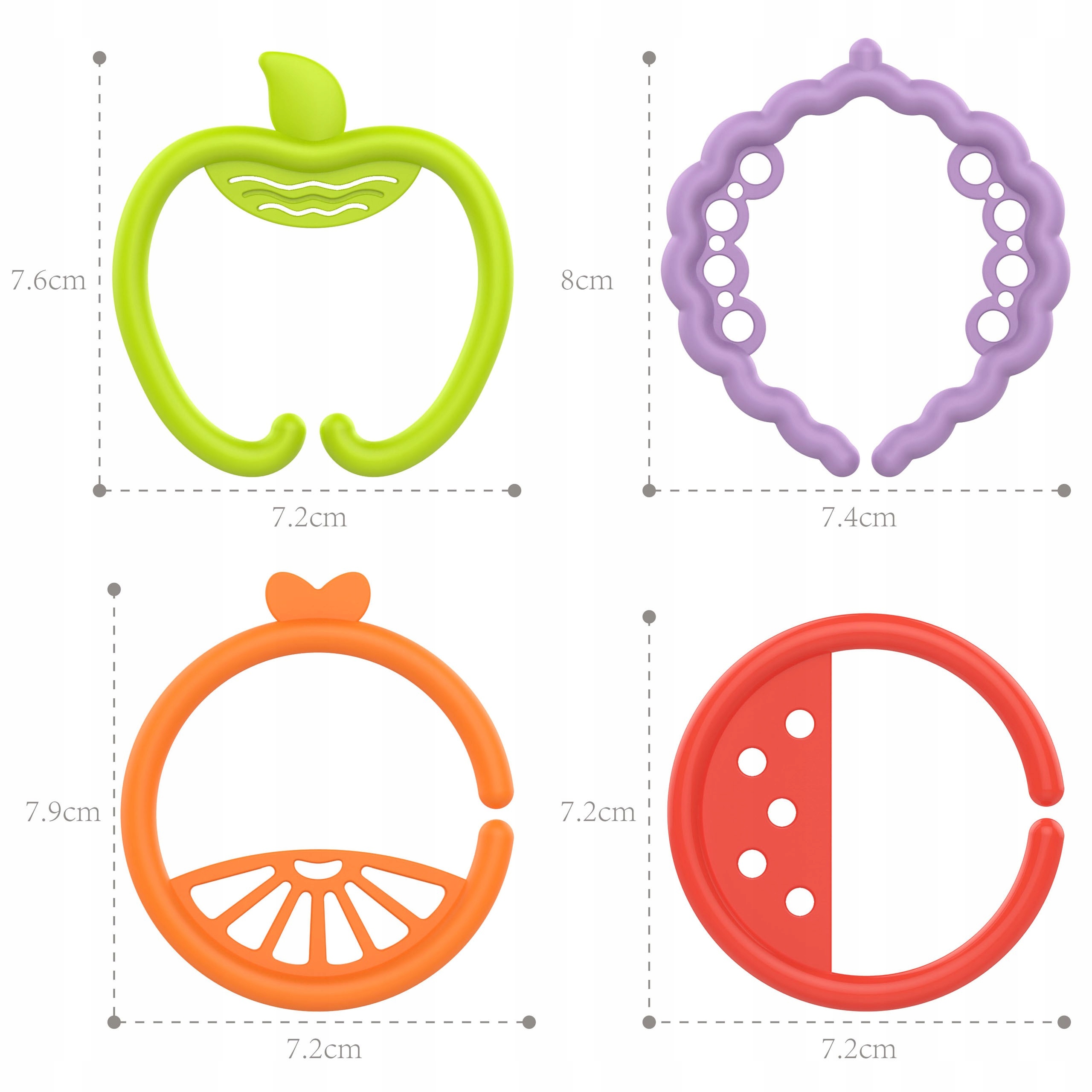 Сенсорные игрушки-прорезыватели WOOPIE для малышей Цепочка с подвесками в виде фруктов 4 шт.
