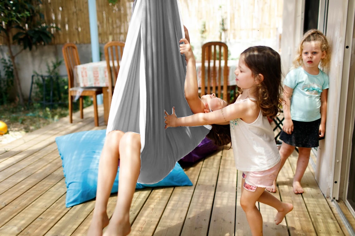 Мягкое покачивание качелей и вокруг собственной оси обеспечивает терапевтический эффект, успокаивает эмоции и снимает напряжение в организме, удовлетворяет потребность в сенсорных раздражителях. Постоянная сенсорная стимуляция полезна для детей и подростков, страдающих расстройствами сенсорной обработки, синдромом Аспергера, СДВГ или людьми с аутистическим спектром.
