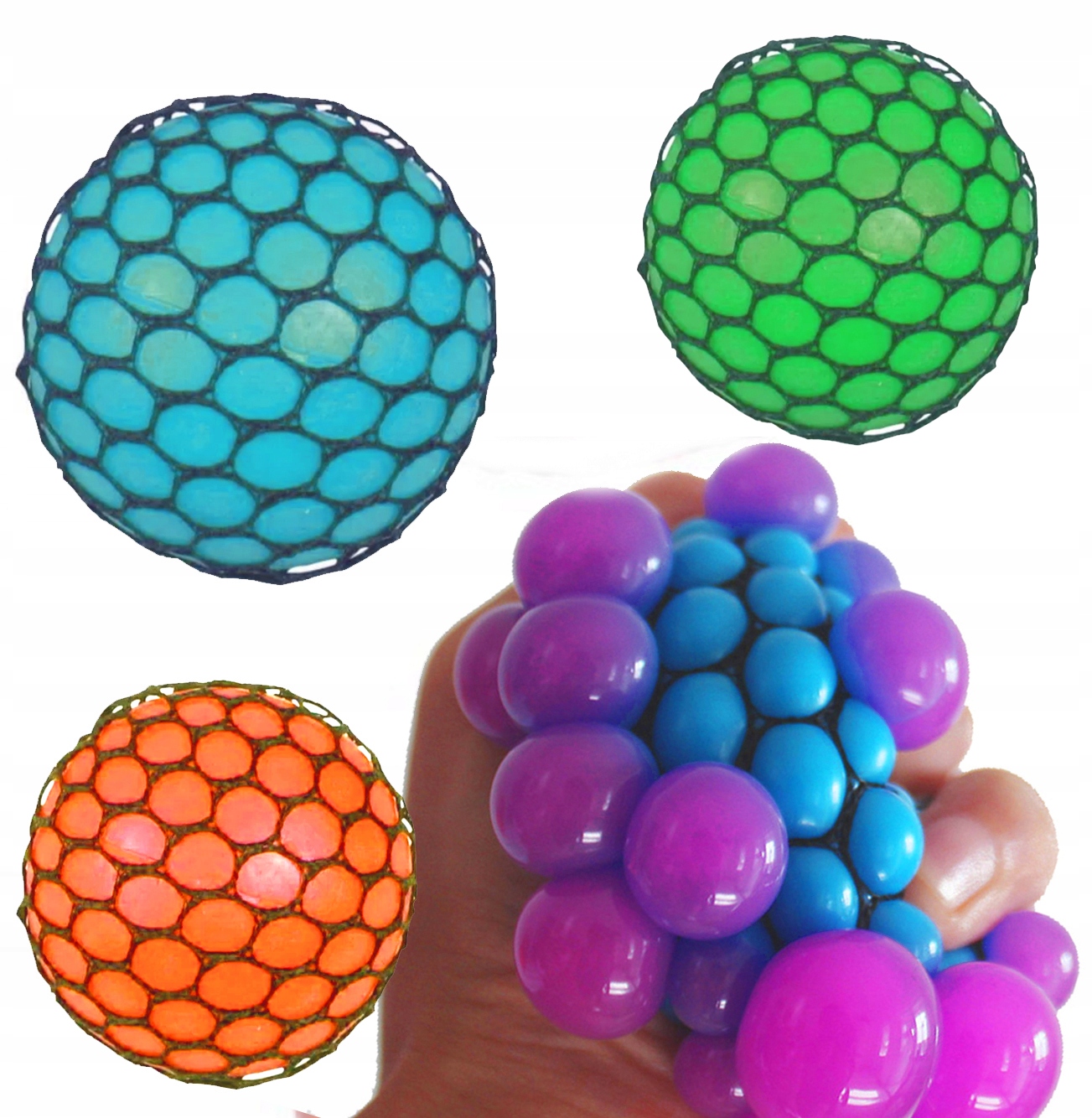 ✅RAINBOW SQUISHY MESH BALL — игрушка-антистресс из очень мягкой резины, с небольшими выступами, наполненная гелем и покрытая сеткой, через которую при сдавливании выдавливаются пузырьки