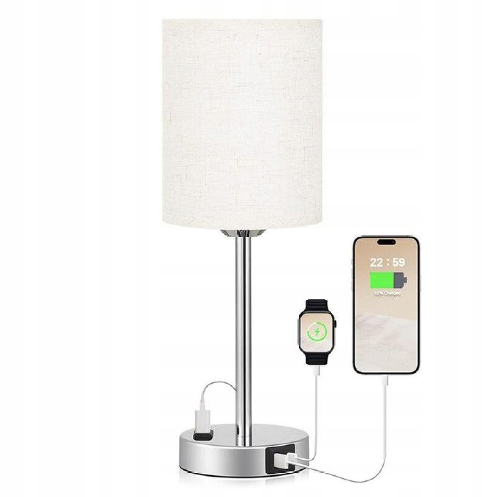 СЕНСОРНИЙ НІЧНИК USB A+C, АБАЖУР СВІТЛОДІОДНИЙ З ЗАТЕМНЕННЯМ E27 3000 K ДЛЯ СПАЛЬНІ
