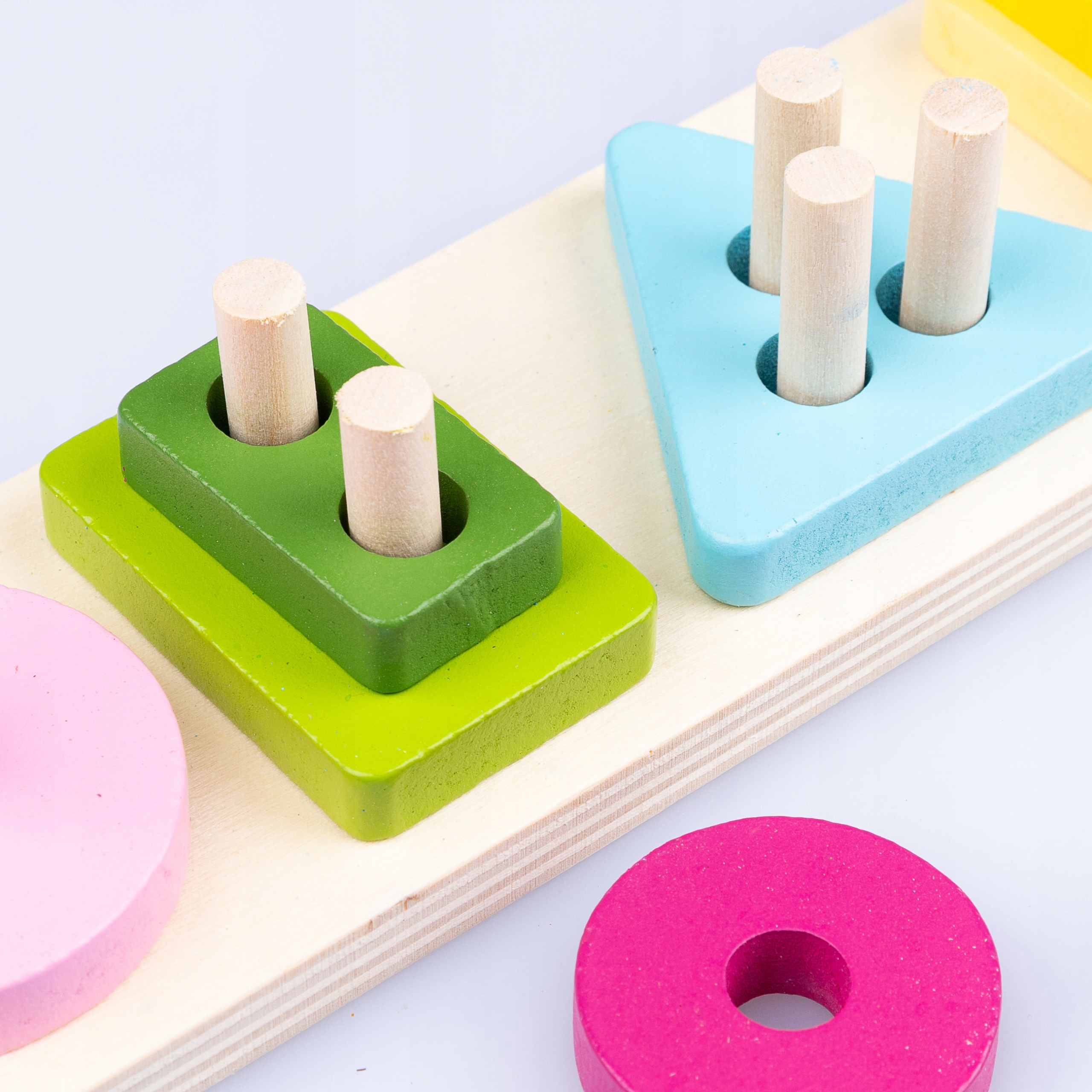 Эта деревянная головоломка — идеальный подарок для самых маленьких, которым нравятся творческие игры и радость открытия новых форм и цветов.