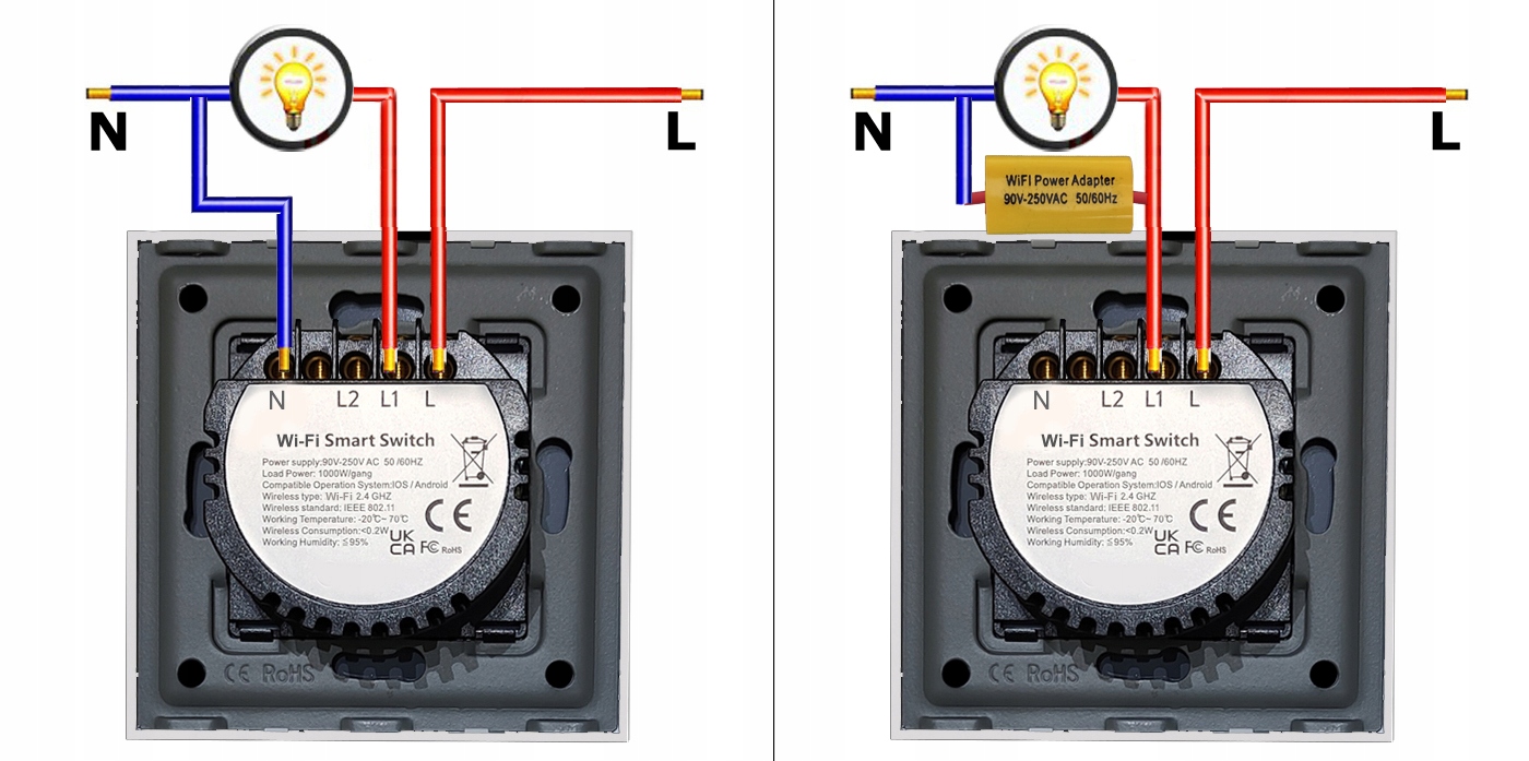 Этот продукт решает эти проблемы! b> Вы можете легко заменить традиционный выключатель предложенным здесь выключателем, чтобы создать по-настоящему умный дом, независимо от того, есть ли в вашей осветительной установке кабель N или нет.
