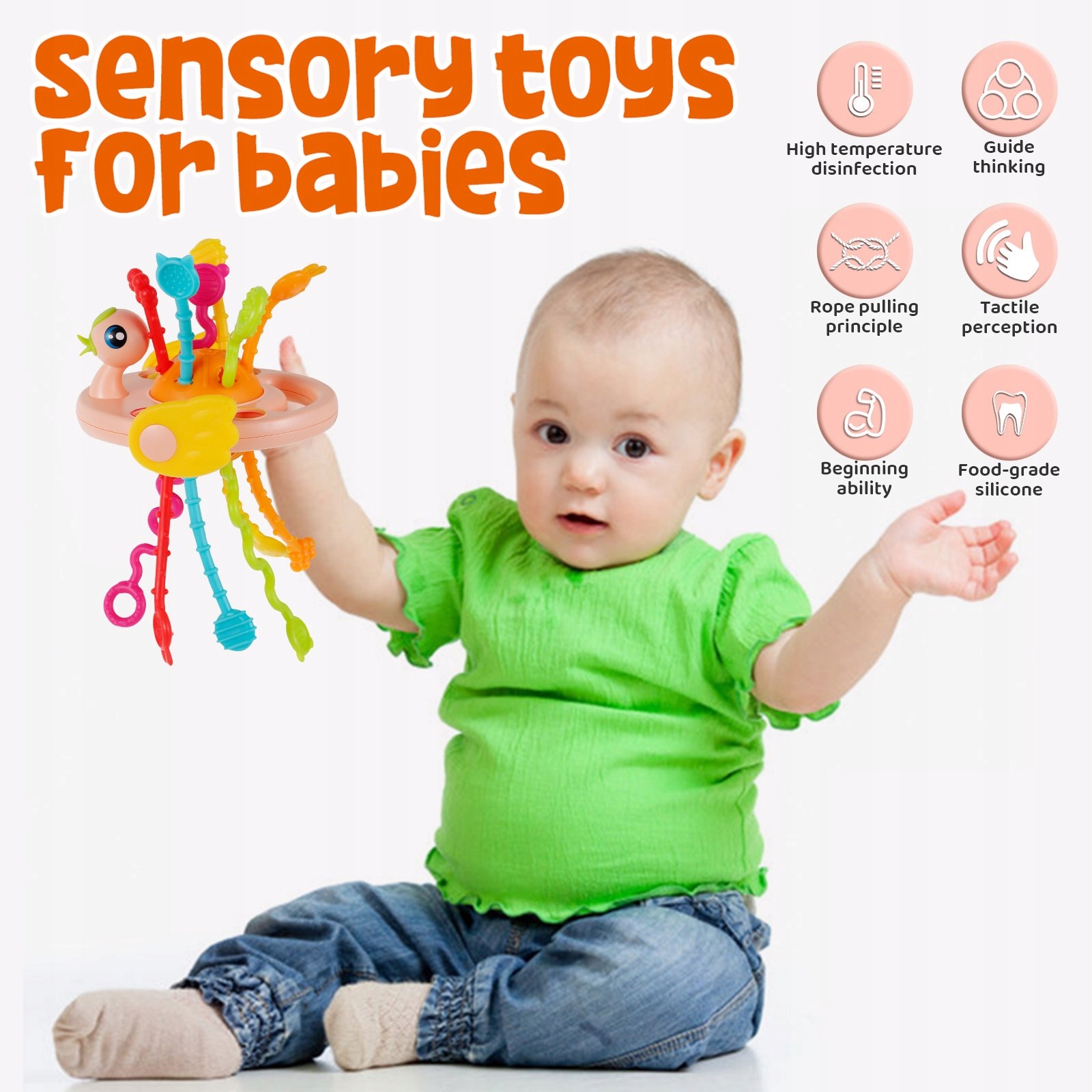 - Мультисенсорная игрушка для ребенка полезна для ребенок, у которого режутся зубки, и любознательный годовалый малыш, изучающий причину и следствие.