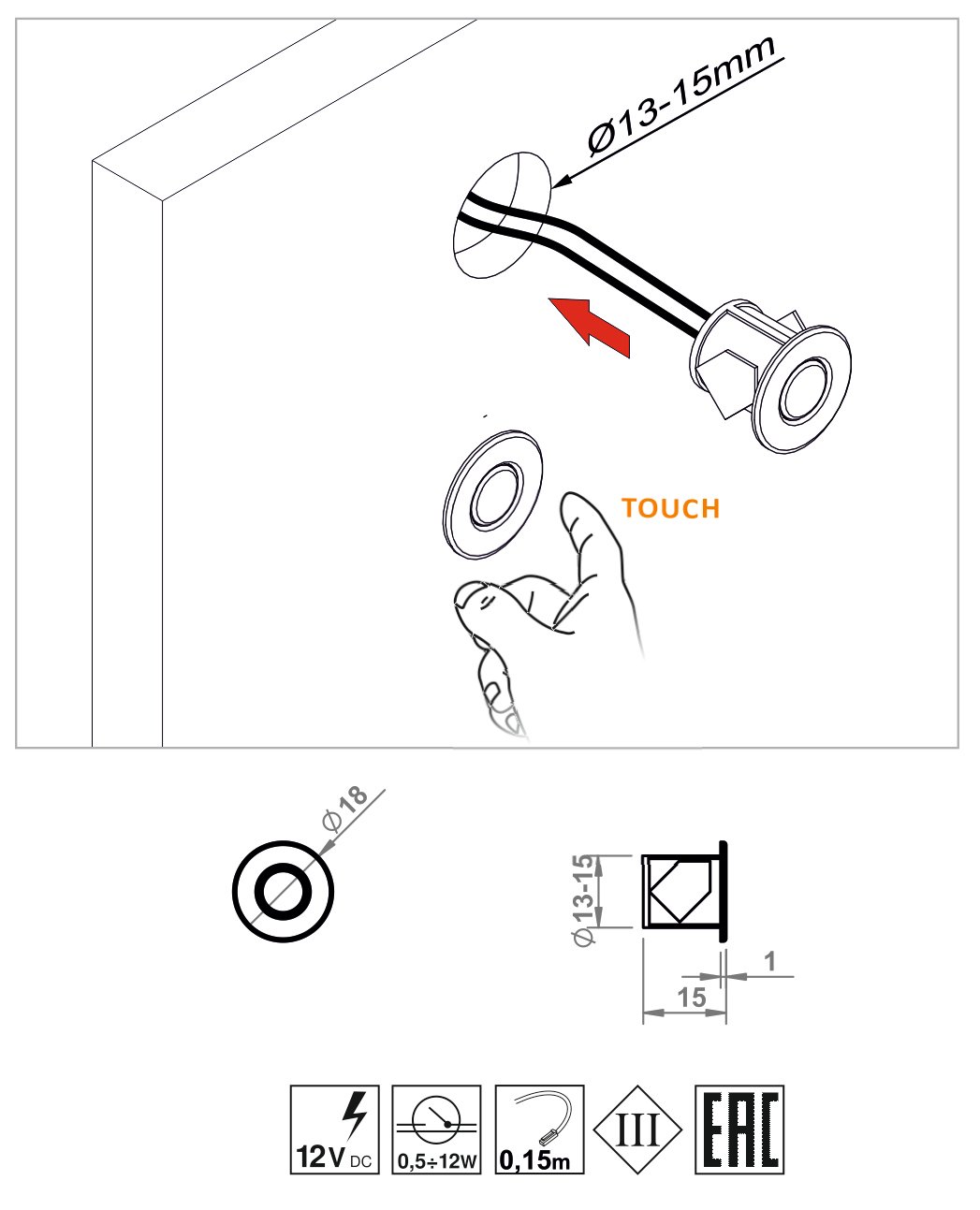 Сенсорный переключатель с функцией затемнения используется для включения или выключения светодиодного освещения DV 12 В.