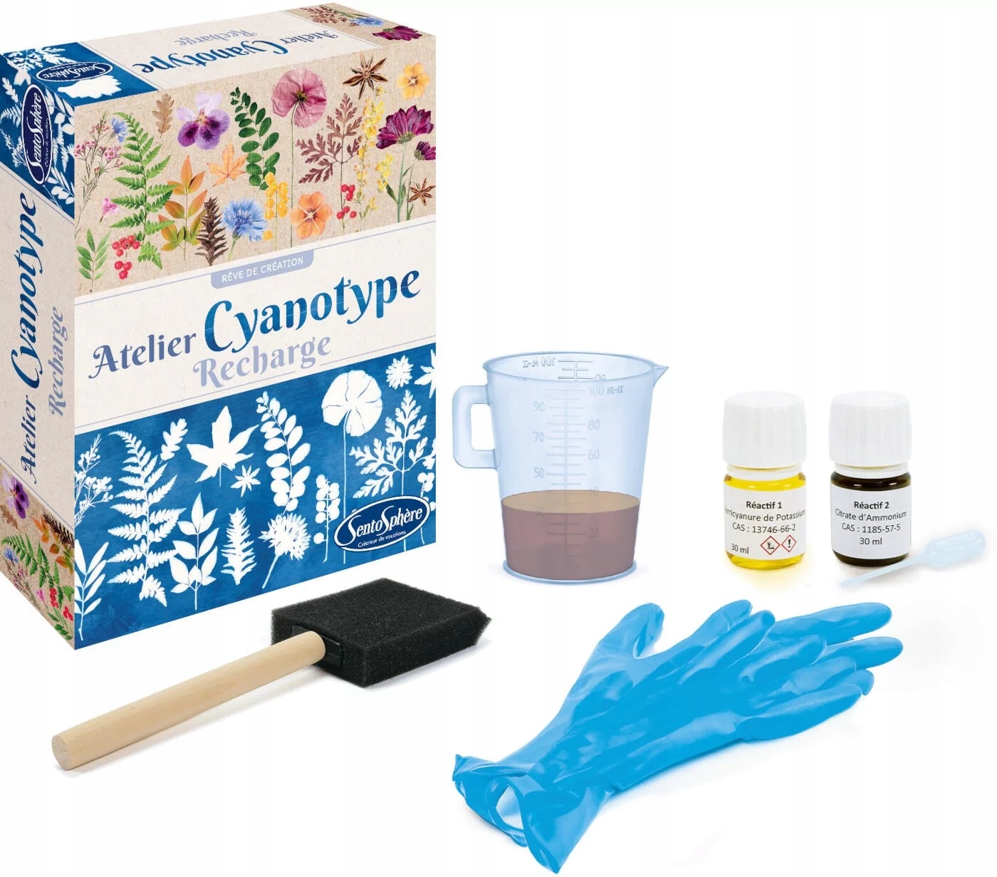Запасной набор для цианотипов Sentosphere является идеальным решением для любителей фотографии и искусства. Этот набор включает в себя все, что вам нужно для приготовления 30 мл раствора, в том числе: банку с калиевым железом, банку с цитратом железа-амония, пипеткой, губчатой щеткой, стаканом и двух перчатках. Цианотип - это уникальная техника фото, которая позволяет создавать принты с красивым темно -синим цветом, известным как прусский синий.