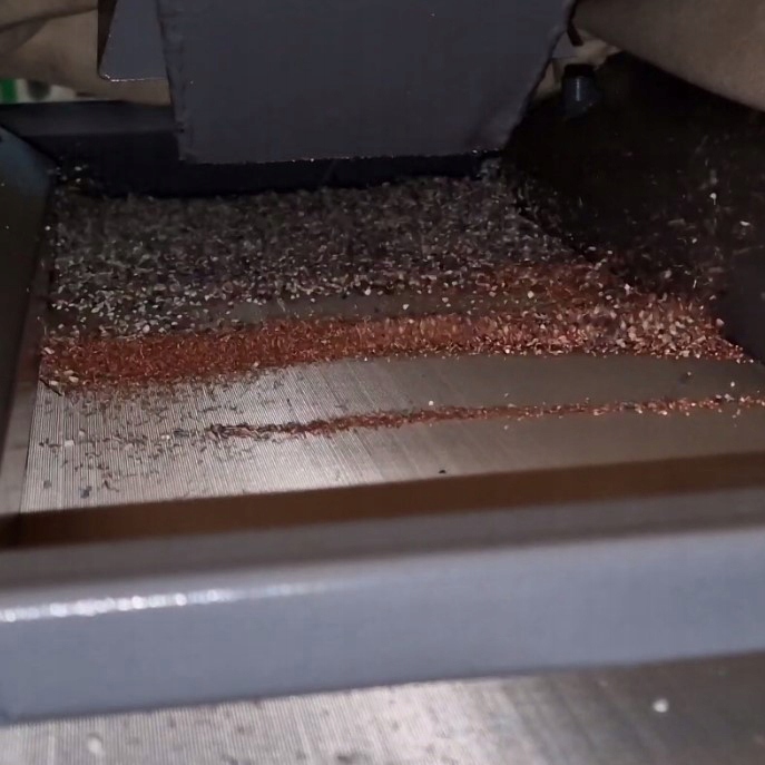 ✅Режущая камера измельчает материал до мелкой фракции, при измельчении изоляция изначально отделяется от меди. Затем воздуходувкой и виброплитой отделяют изоляцию от меди.