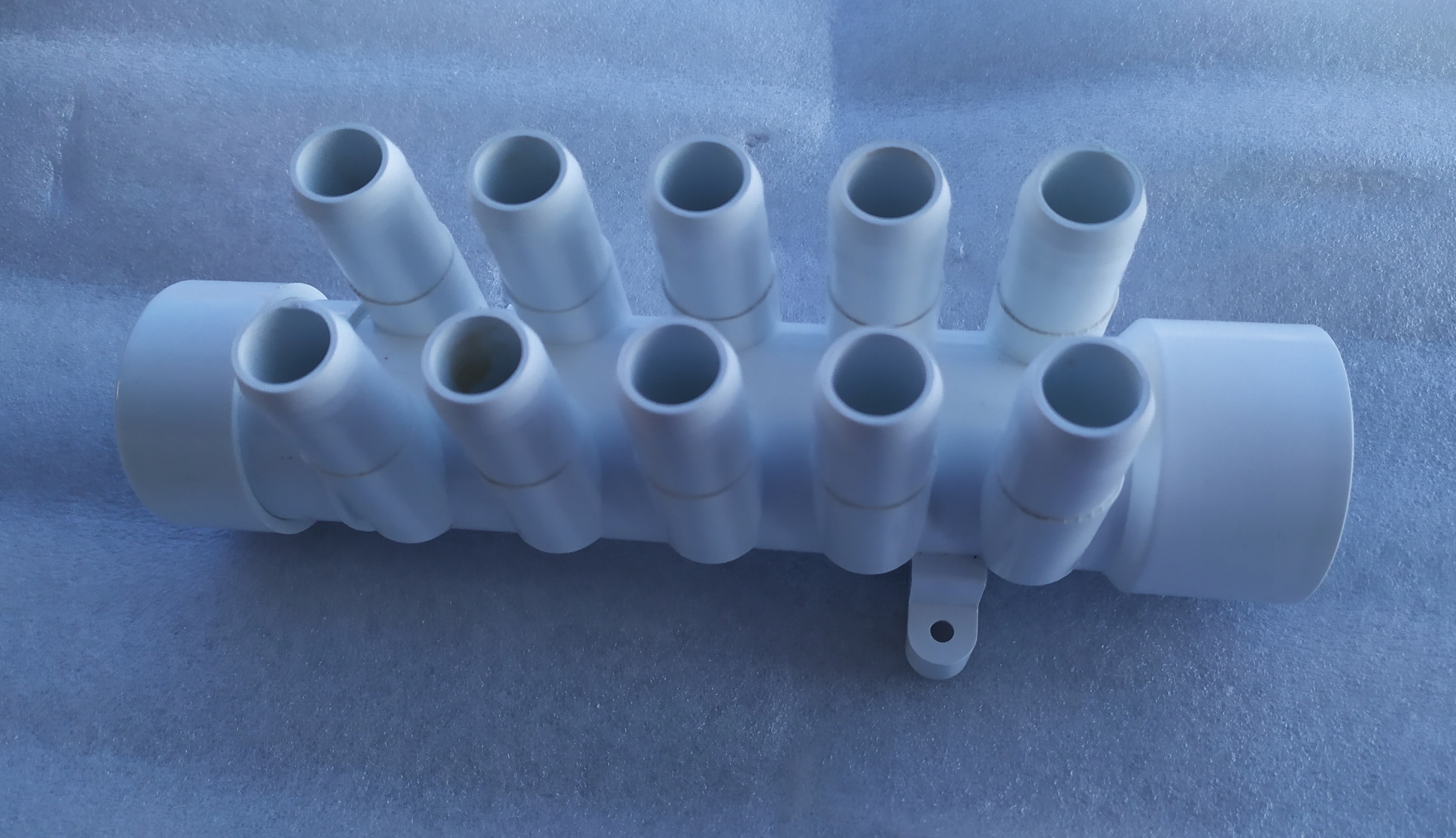 Распределители свободно комбинируются между собой, один переходит в другой, если необходимо разделить воздух от нагнетателя на 20 сопел, то нужны 2 распределителя, которые проклеены ПВХ клей