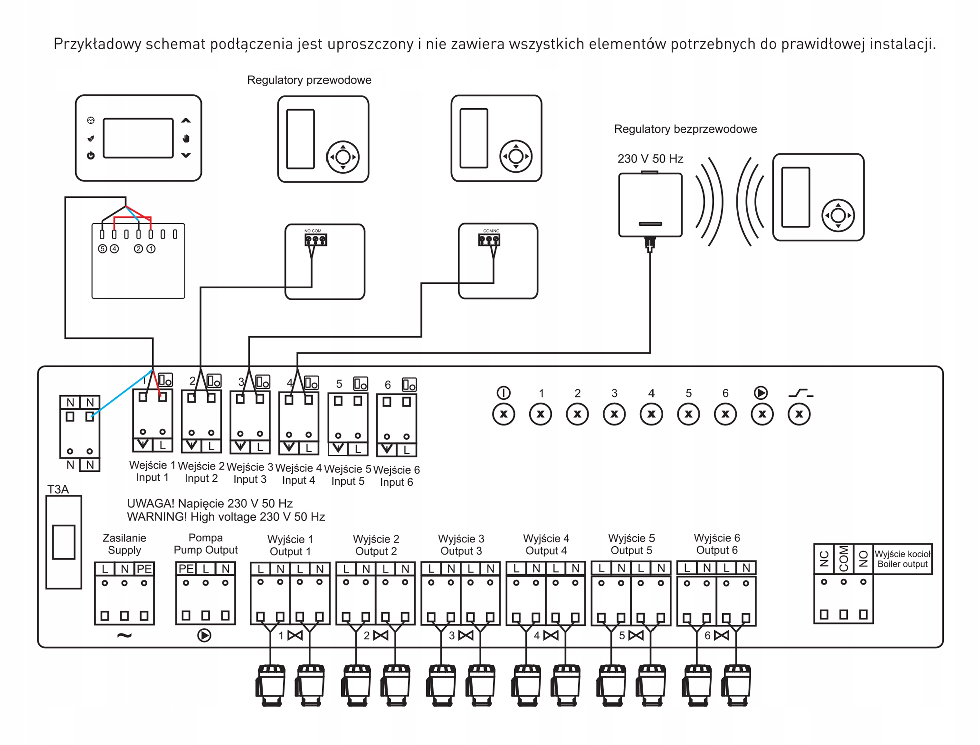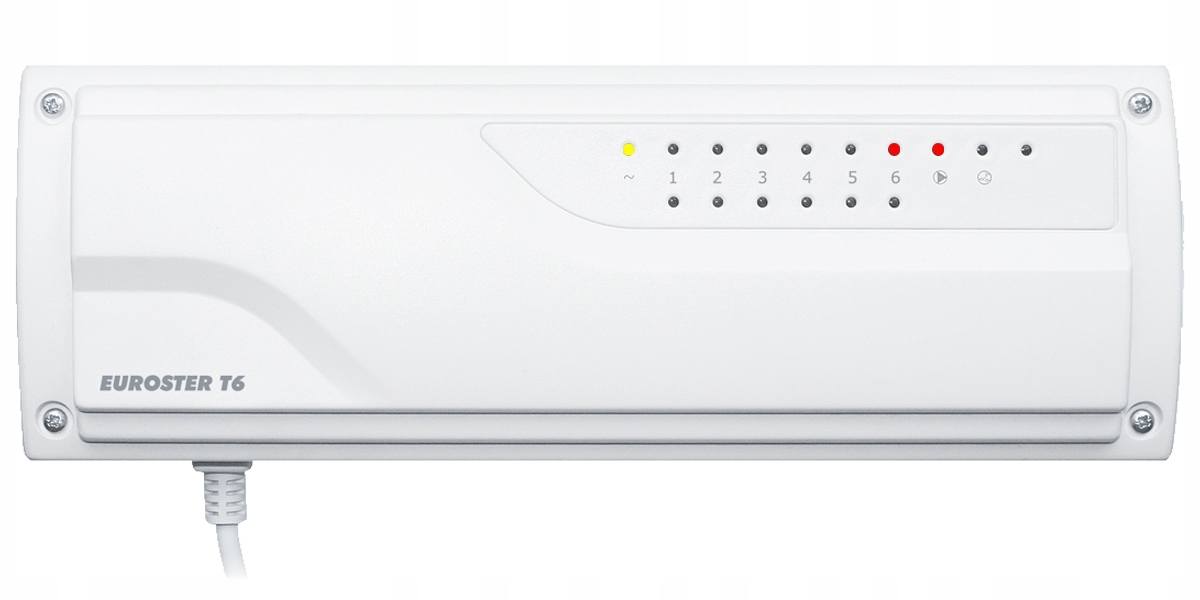 Euroster T6 – универсальный проводной модуль управления распределителями систем водяного теплого пола. Он независимо управляет максимум 24 исполнительными механизмами, установленными на напольном распределителе, и имеет возможность отключать котел и циркуляционный насос, если отключены все контуры отопления. Модуль работает с проводными комнатными регуляторами Euroster и нормально закрытыми (NC) электротермическими приводами на 230 В. Euroster T6 позволяет последовательно подключать модули для управления обширной системой отопления.