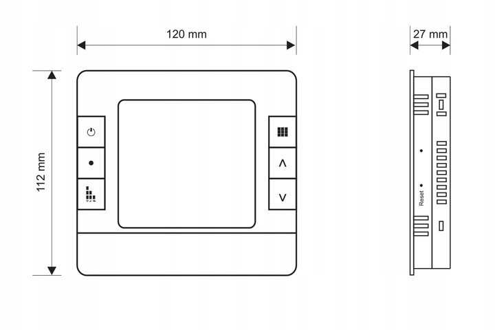 - Размеры: ширина/высота/глубина. (мм): 120/112/27