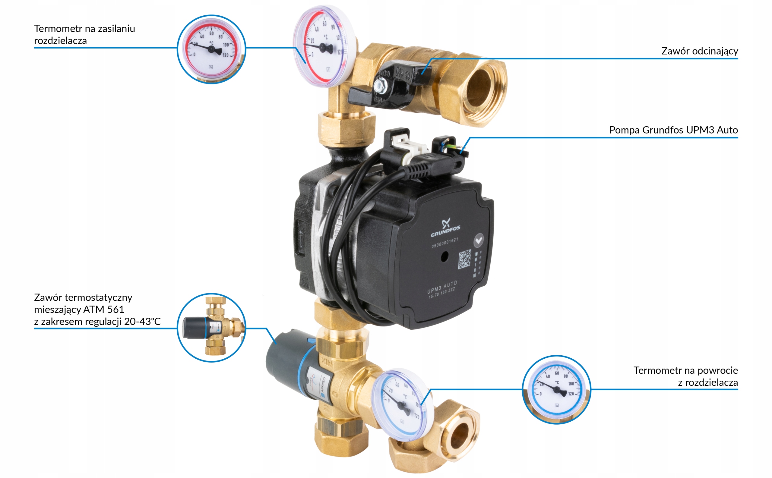 - Смесительный комплект AFRISO BTU 501 для теплого пола с клапаном ATM, автоматический насос Grundfos UPM3< /li>