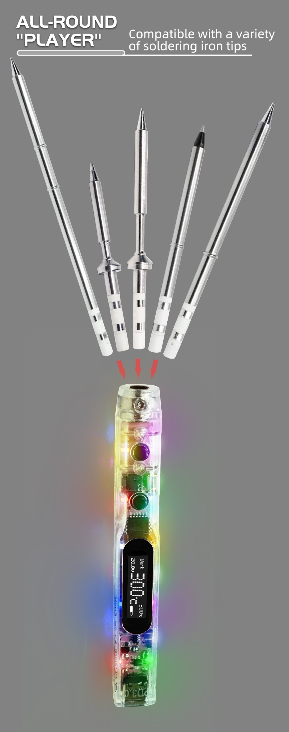 - Oled Display: Прозрачный OLED -экран обеспечивает легкую работу и мониторинг параметров пайки