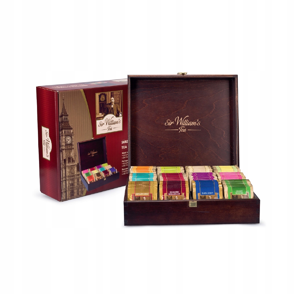 Содержимое: деревянная коробка для чайных пакетиков с двенадцатью отделениями - для демонстрации и презентации 12 видов чая Sir Williams, 15 пакетиков. каждый.
