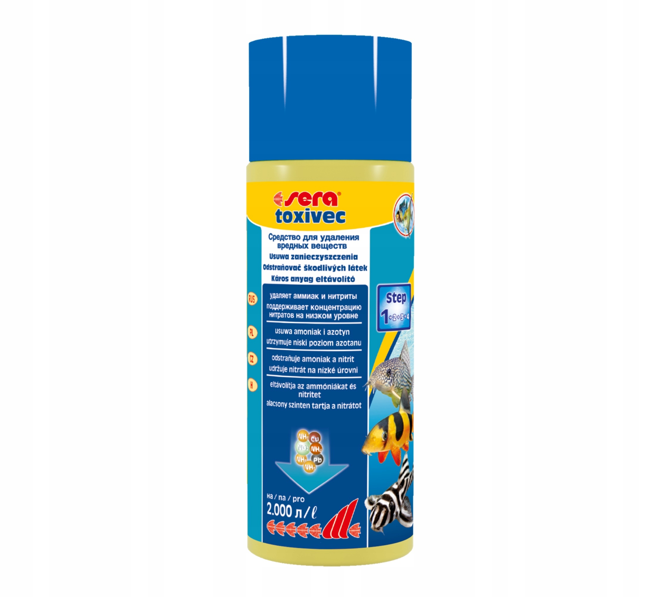 Благодаря дестабилизирующие факторы, такие как: перекорм, высокая плотность рыб в аквариуме, новые аквариумы, использование медикаментов, высокая степень загрязнения воды ихтиотоксинами, такими как аммиак и нитриты, которые могут внезапно появиться в аквариумной воде. В таких чрезвычайных ситуациях sera toxivec немедленно удаляет токсины и другие опасные вещества, такие как хлор и тяжелые металлы. Естественный баланс в аквариуме возвращается после удаления загрязнений без необходимости повторных больших подмен воды, вызывающих стресс.