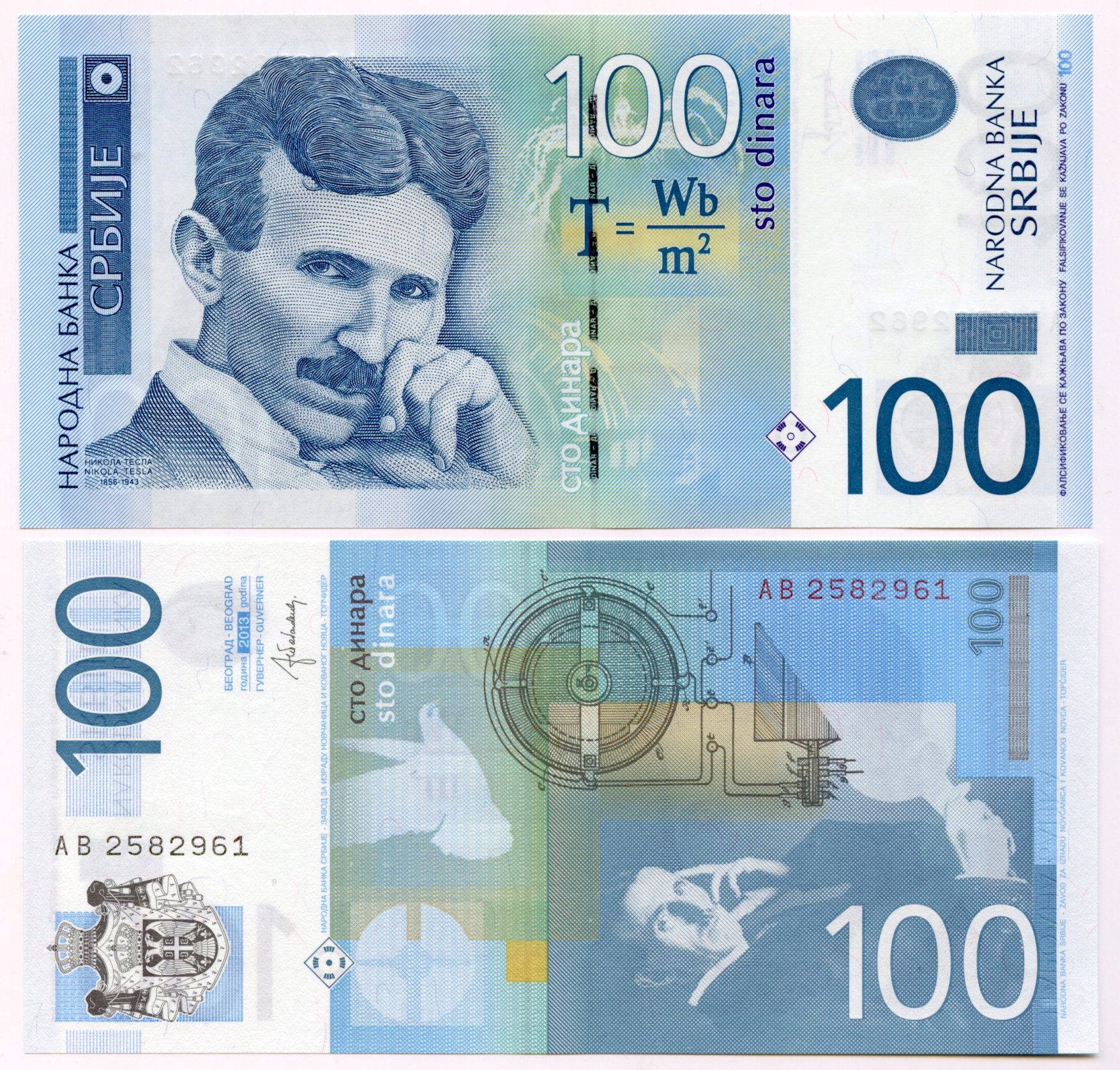 Сербия 100 Динар 2013 P-57B UNC NIKOLA TESLA