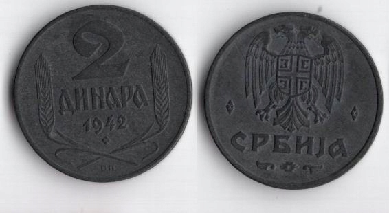 СЕРБІЯ НІМЕЦЬКА ОКУПАЦІЯ 1942 2 ДИНАРА