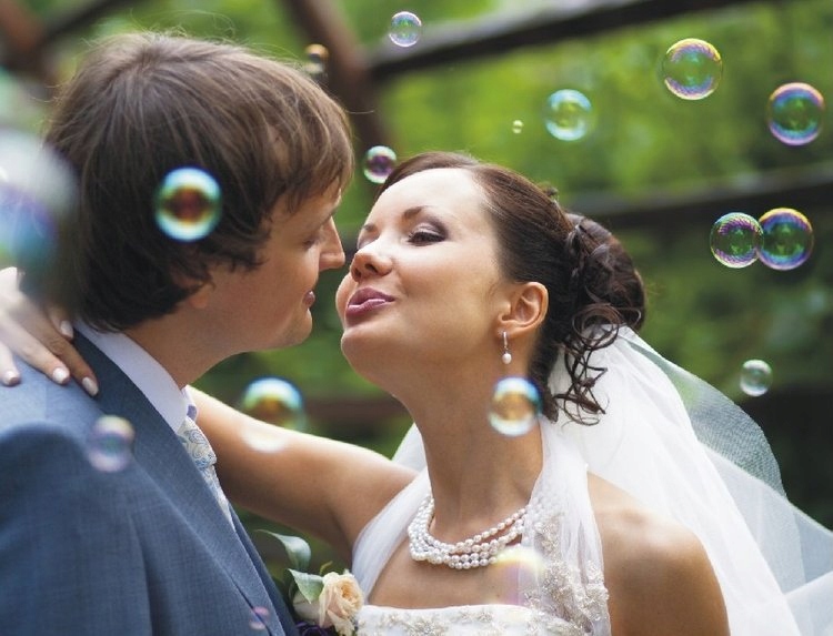 Отличная идея — подарить гостям мыльные пузыри, которые будут плавать в воздухе, делая фотографии в этот особенный день более привлекательными.