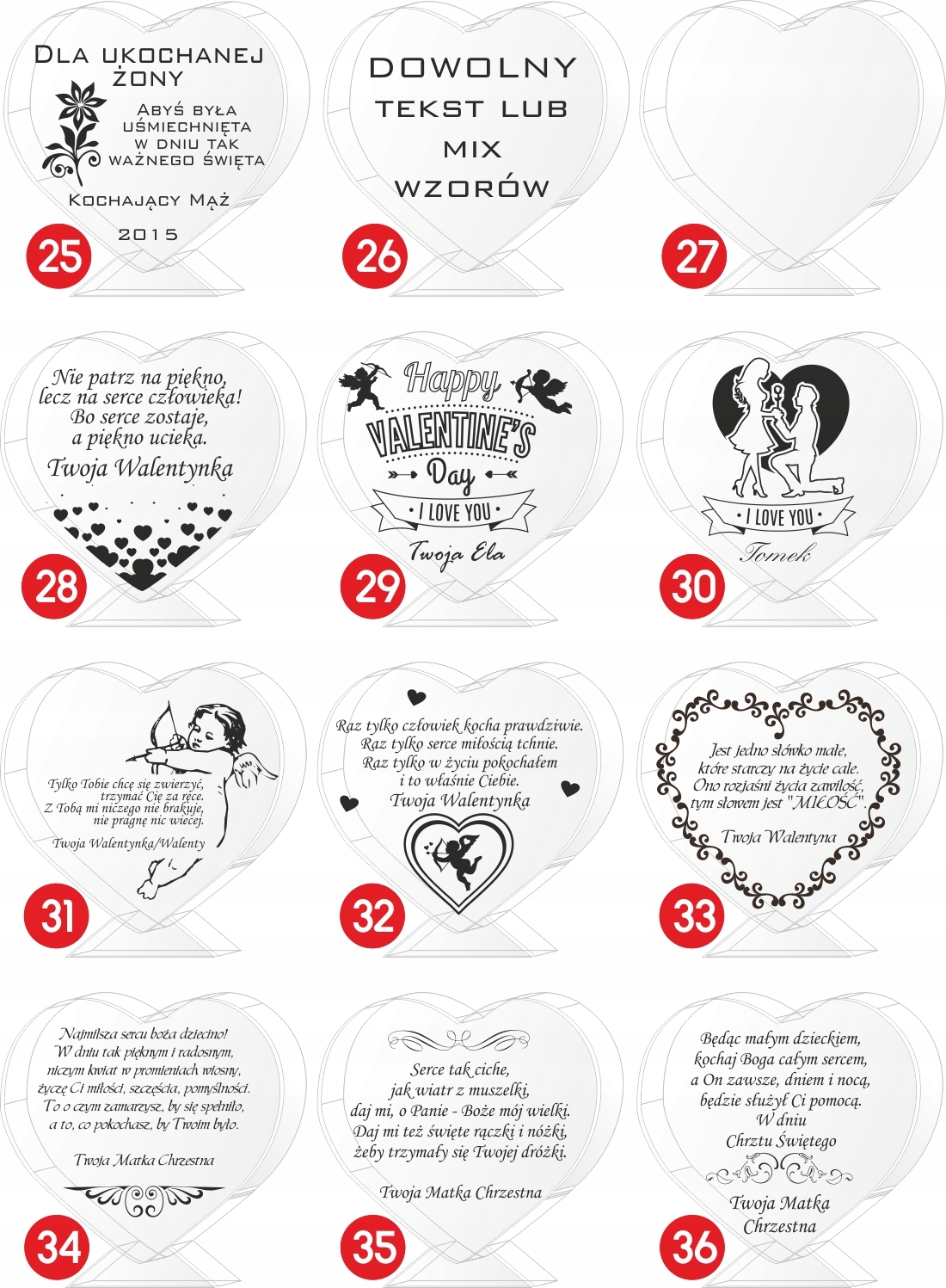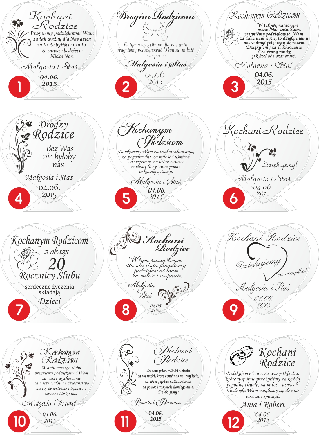 Если вы не соответствуете шаблону присланной нами информации, мы не несем ответственности за любые ошибки в гравировке. Тексты и варианты могут свободно модифицироваться по вашему усмотрению (тексты, отличные от представленных в наших вариантах, необходимо расшифровать на компьютере и отправить нам, например, в тетради). Номера годовщины приведены в качестве примера и могут быть изменены. Тексты, отправленные в виде скриншотов или фотографий, расшифровываться не будут. Транскрибированный текст должен быть предоставлен. Продавец информирует, что изделия из стекла могут содержать на поверхности небольшие пузырьки воздуха и царапины, возникшие в результате производственного процесса.< /п>