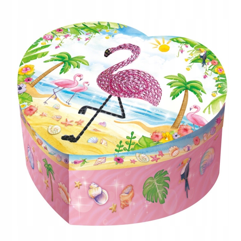 Музыкальная шкатулка в форме сердца с фламинго