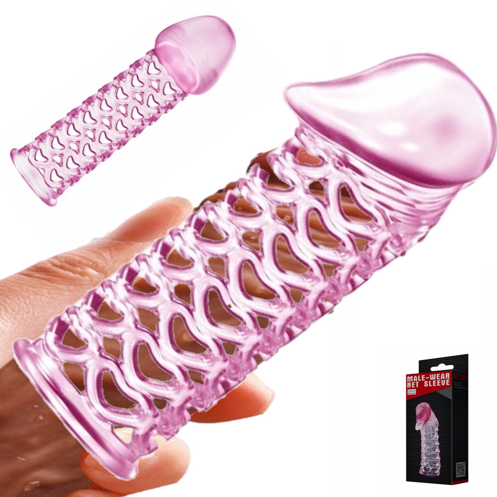 РУКАВ ДЛЯ ПЕНИСА В РОМАНТИЧЕСКОЙ АТМОСФЕРЕ С СЕРДЕЧКАМИ В ВИДЕ СТИМУЛИРУЮЩЕГО АЖАРА С МГНОВЕННЫМ Утолщением и увеличением ВАШЕГО ПЕНИСА НА 2,2 СМ