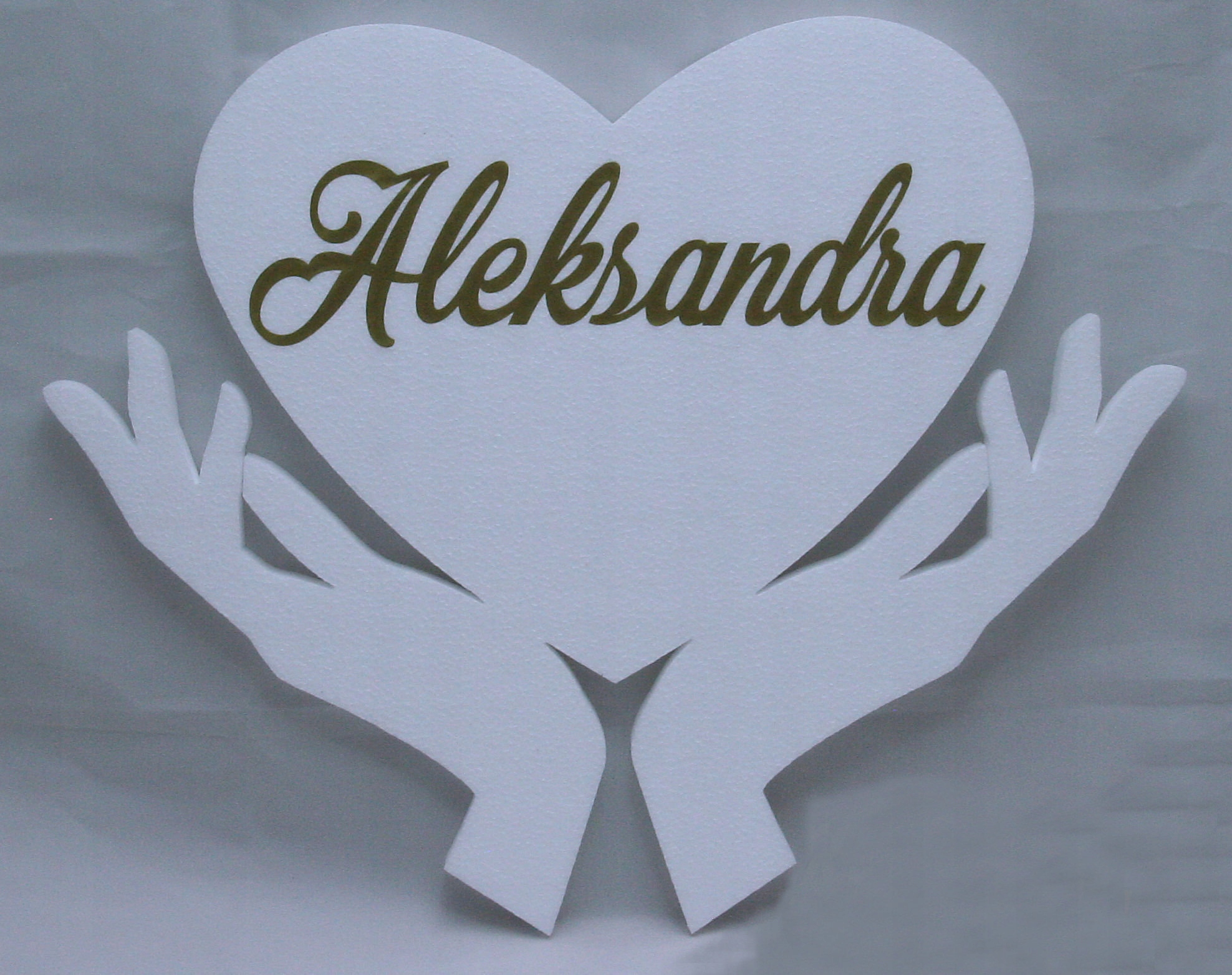 Сердце из пенопласта с именем как элемент украшения для детей, причащающихся к первому причастию.