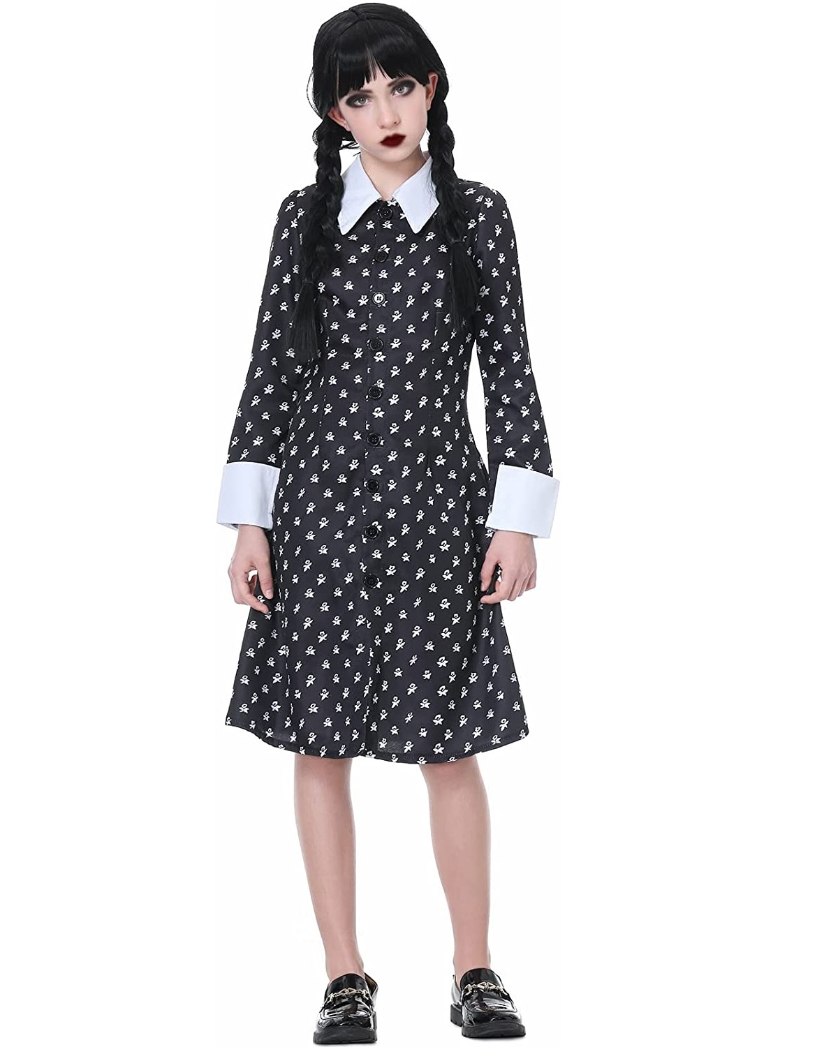 среда Addams Cosplay Dress с париком h1>