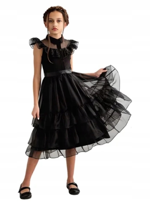 Уникальное платье, в котором внимание к деталям выходит на новый уровень. Это не просто одежда, это настоящее произведение искусства, вдохновленное фильмом Среда. В этом платье каждый элемент прорисован с невероятной точностью, что создает точное воспроизведение культового стиля.