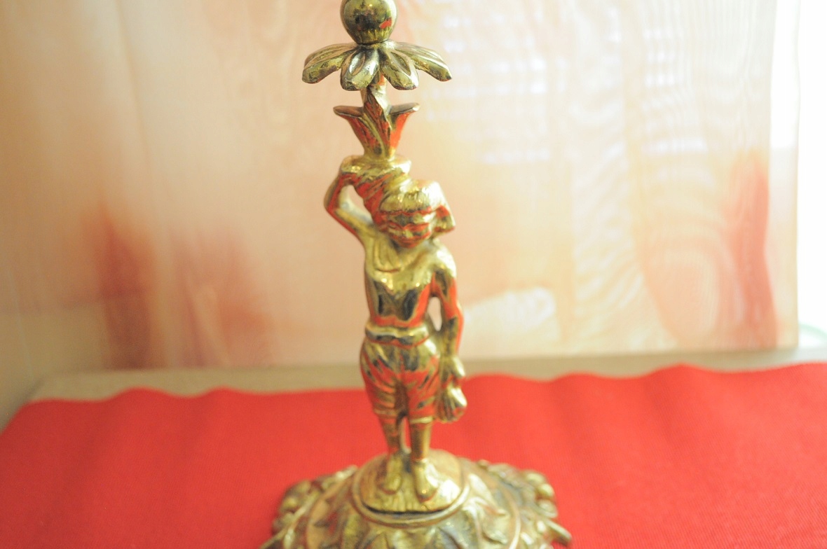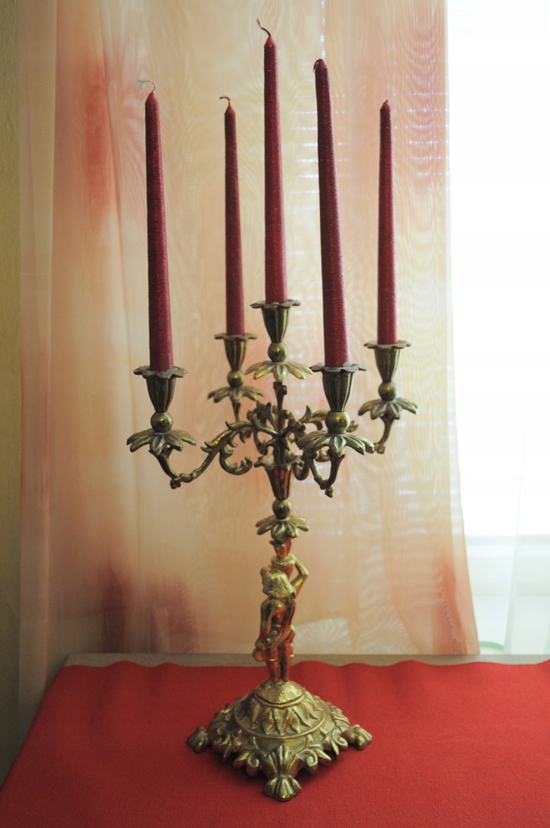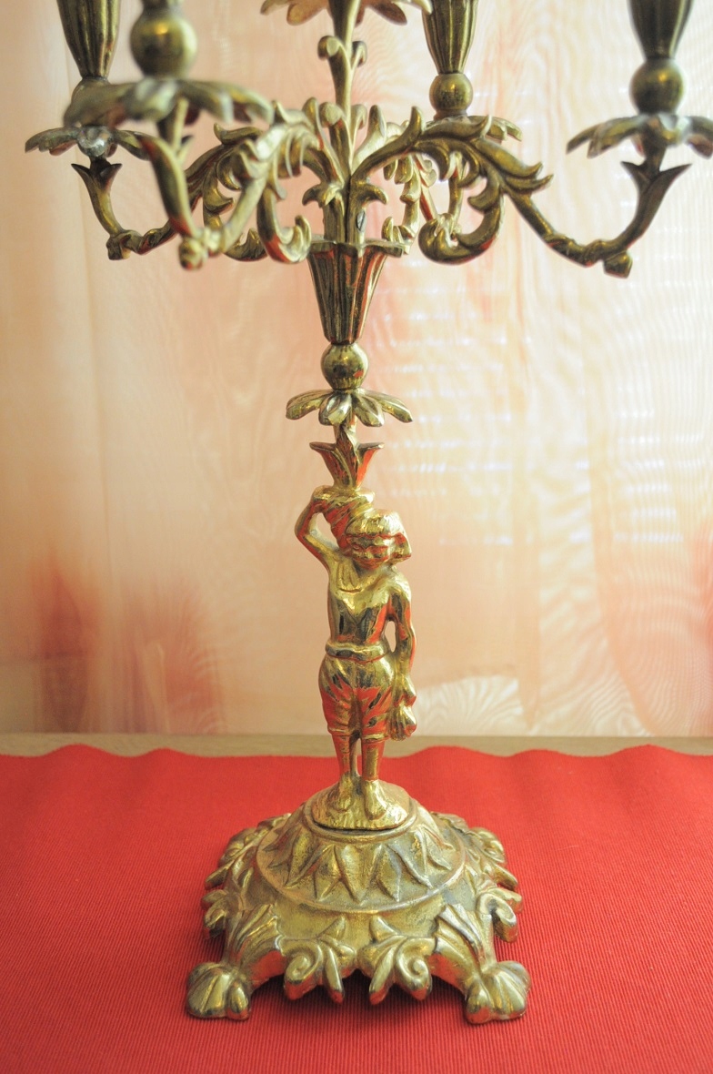 середина 20-го століття, 45 см, ЛАТУННИЙ П’ЯТИРАМЕННИЙ СВІЧНИК, ФІГУРНА ПІДСВІЧНИКА /X21