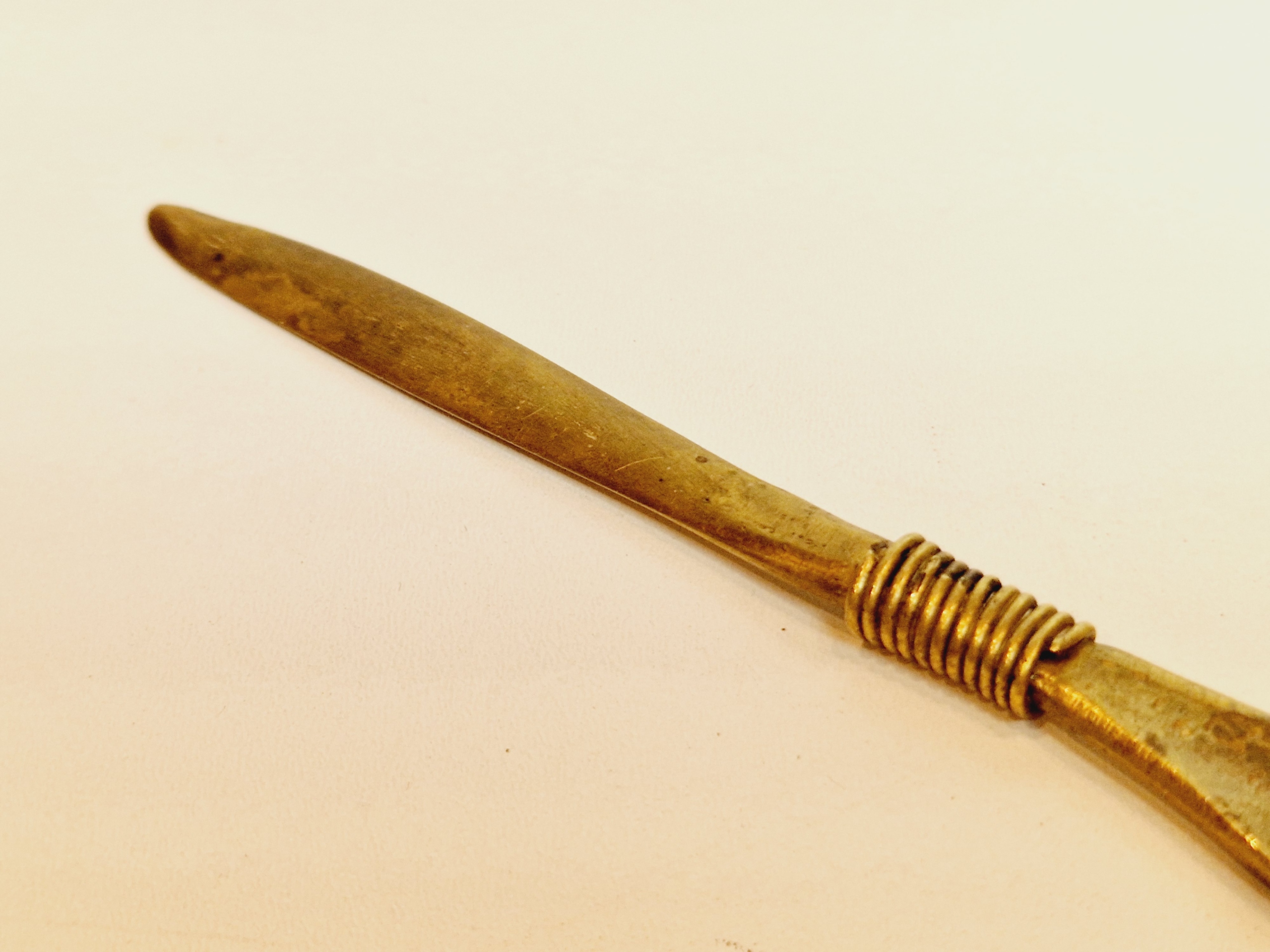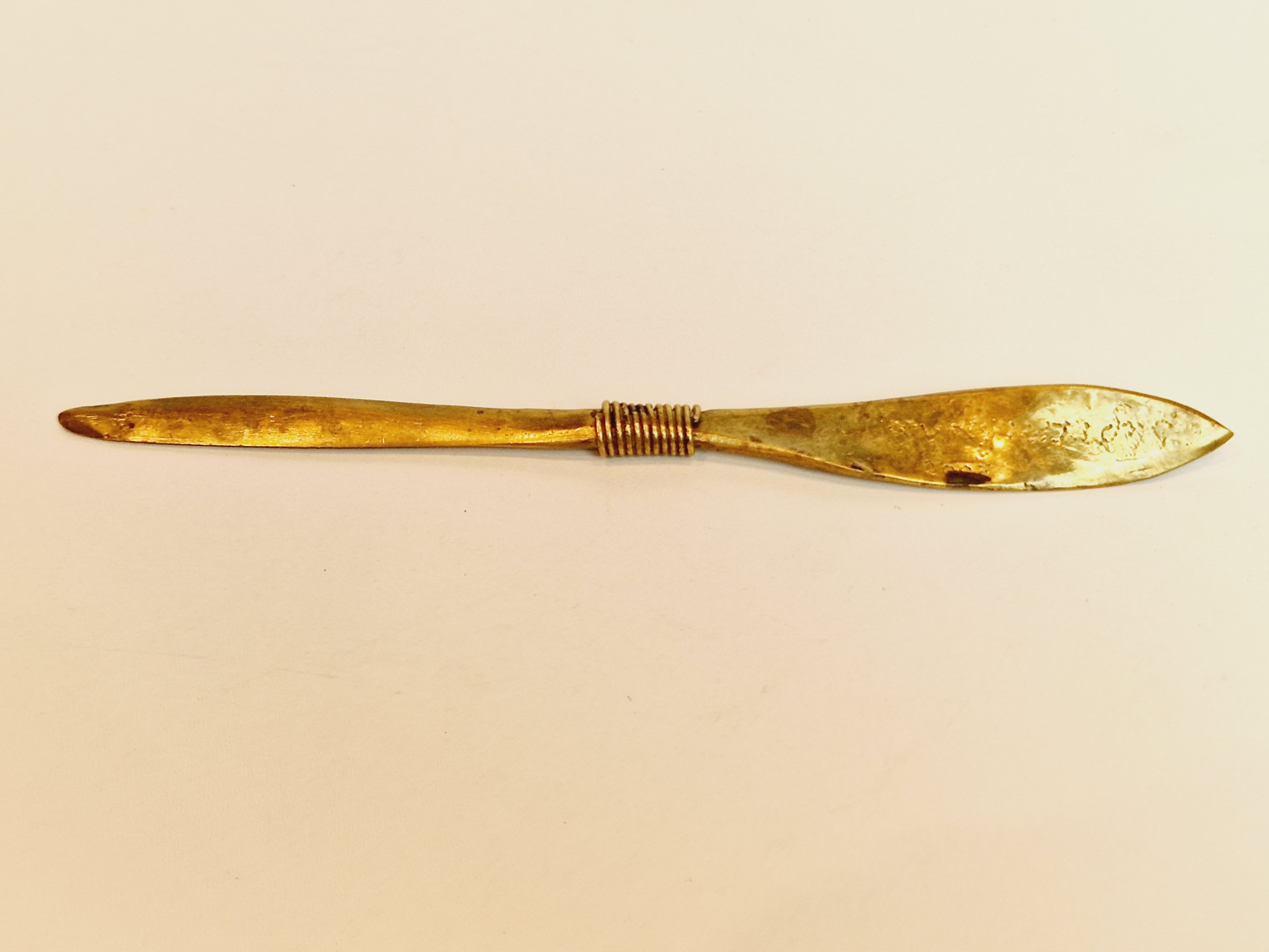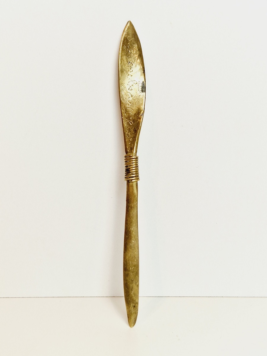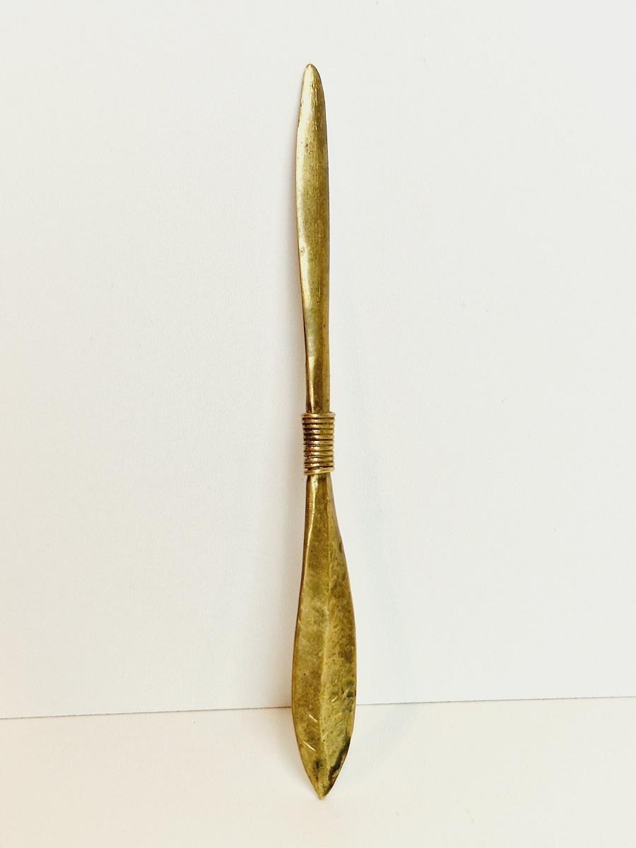 середина 20 століття / "РУЧКА" 20,4 см / 48 г СТАРОВИЙ ЛАТУННИЙ КОНВЕРТ НІЖ /8767