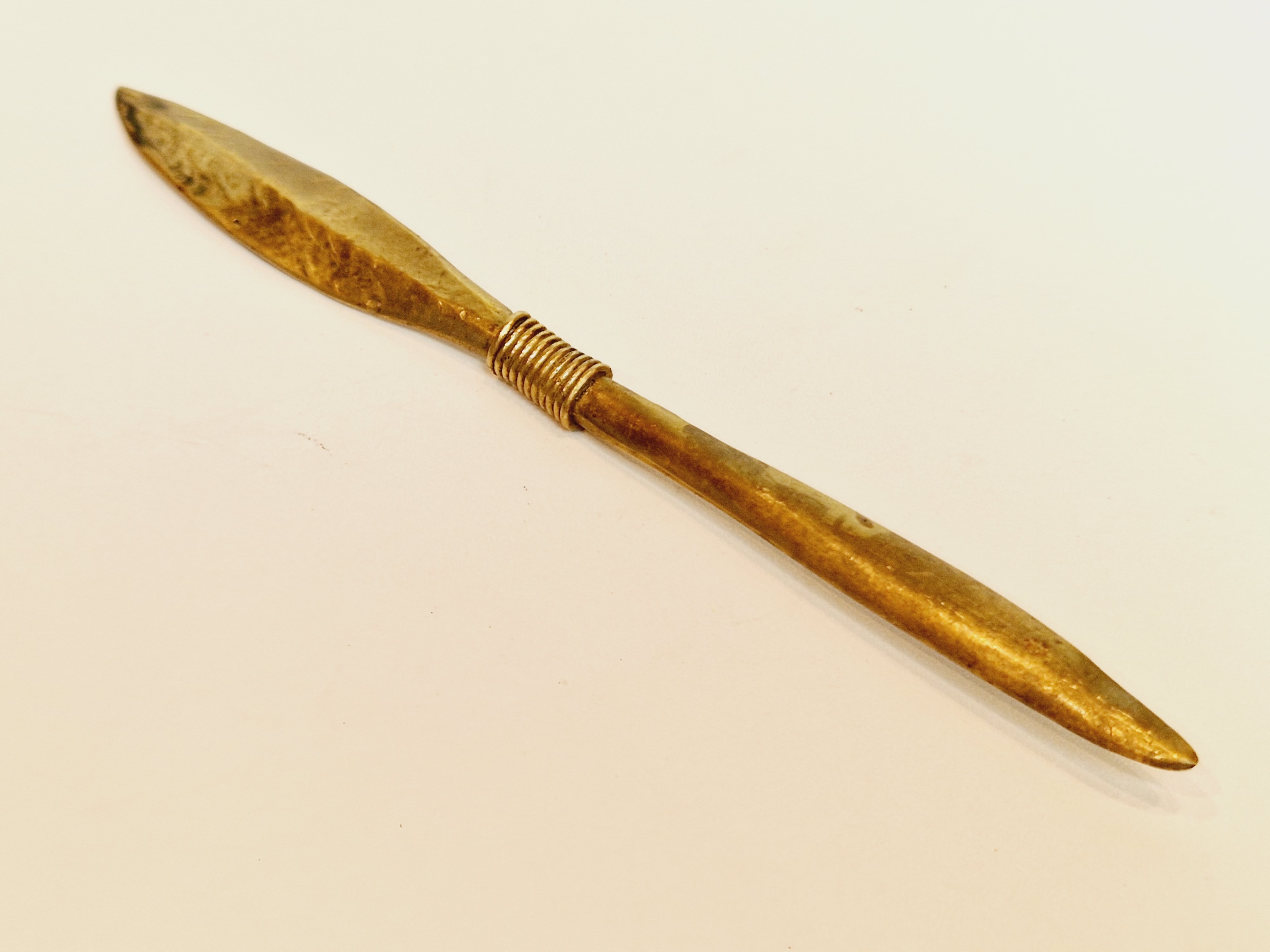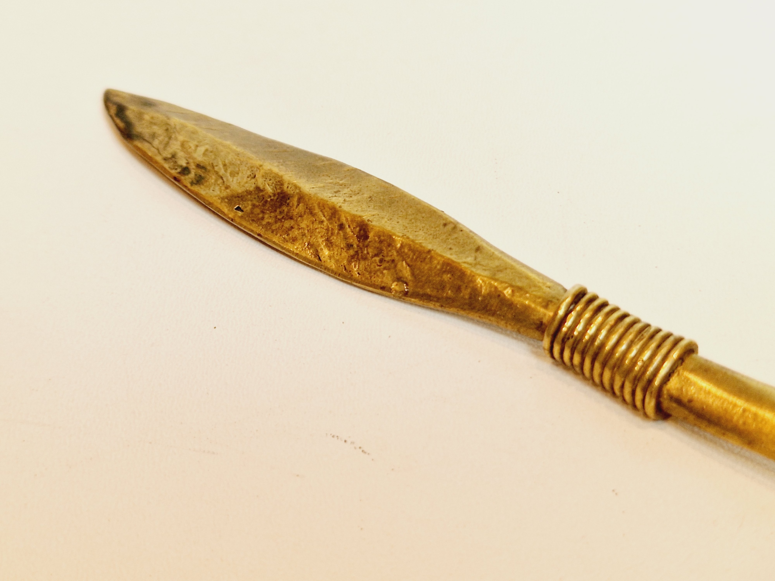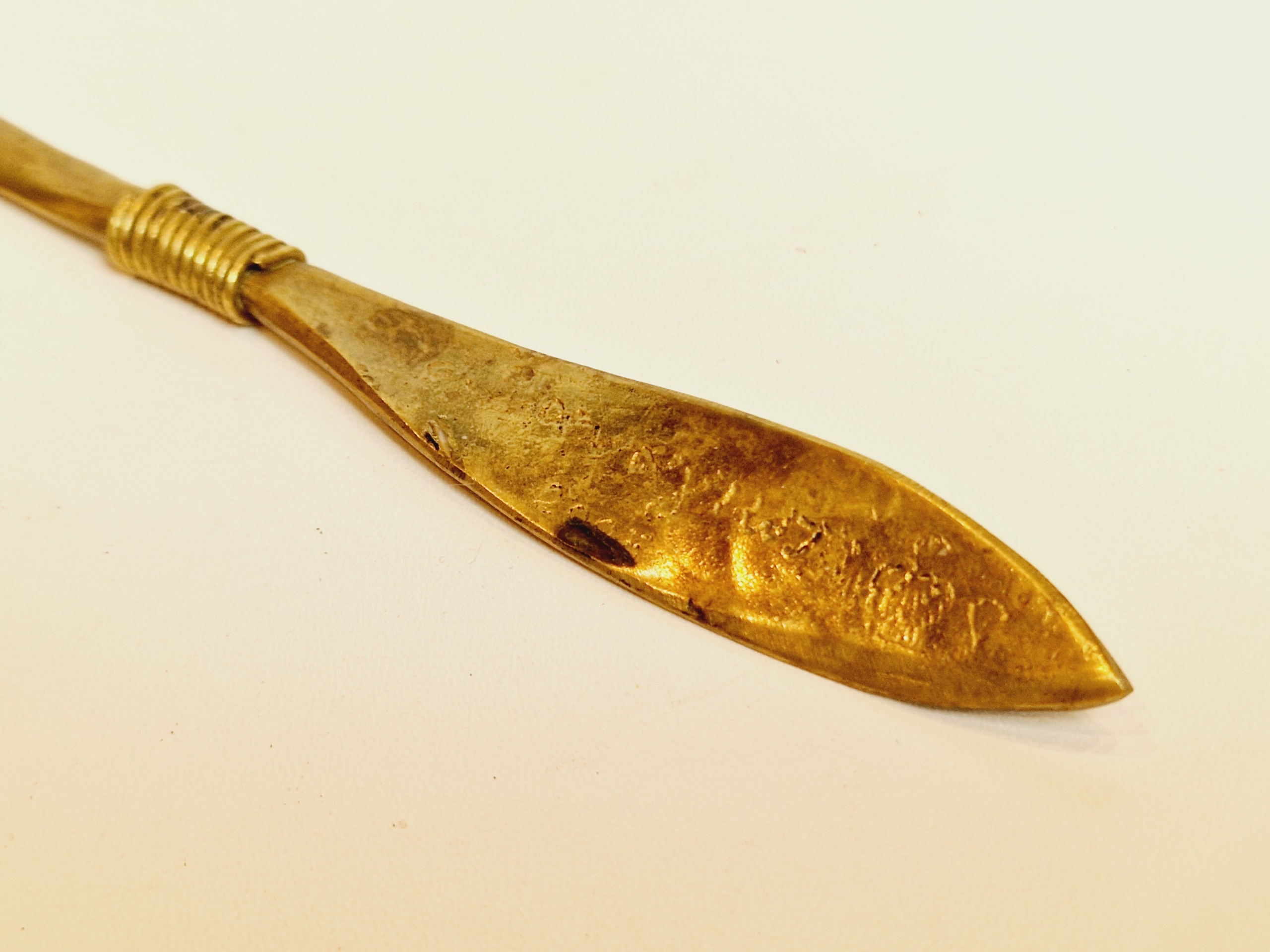 середина 20 століття / "РУЧКА" 20,4 см / 48 г СТАРОВИЙ ЛАТУННИЙ КОНВЕРТ НІЖ /8767