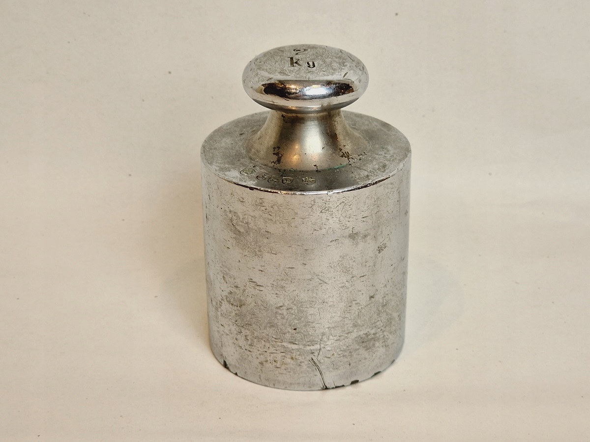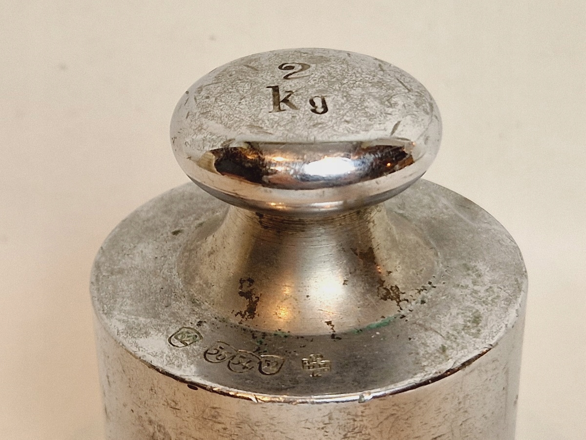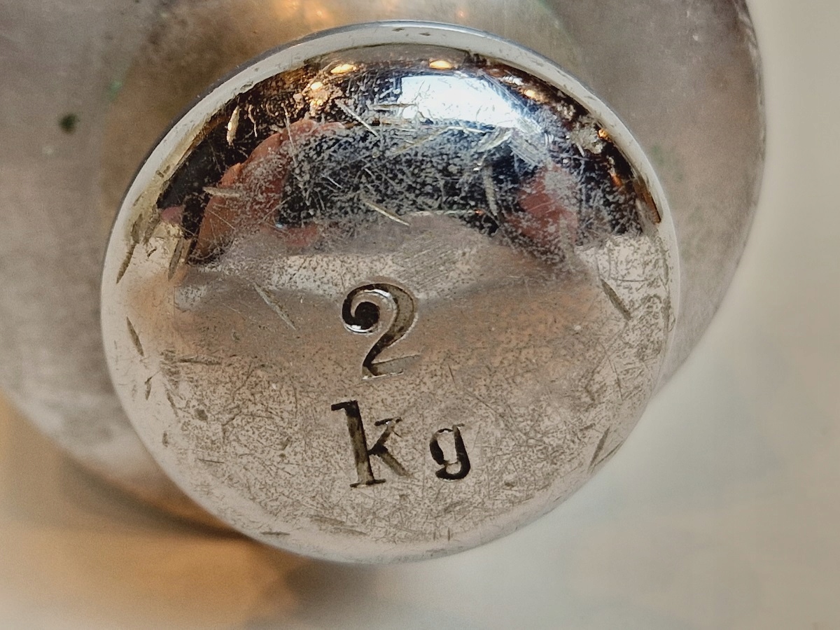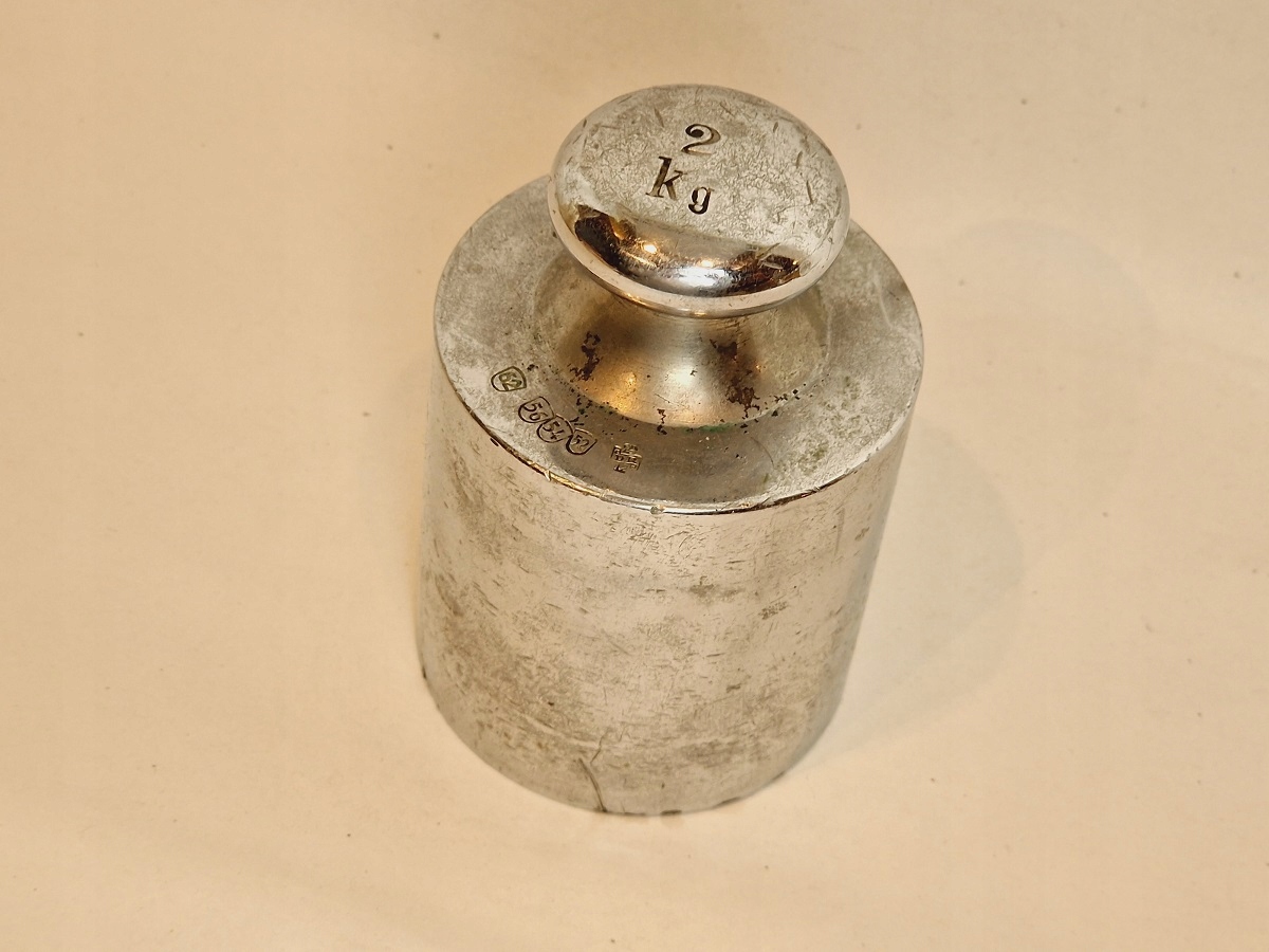 середина 20 століття НІМЕЧЧИНА / "2 кг" - ВЕЛИКА ЛАТУНЬ (нікельована) ТОРГОВА ВАГА /835