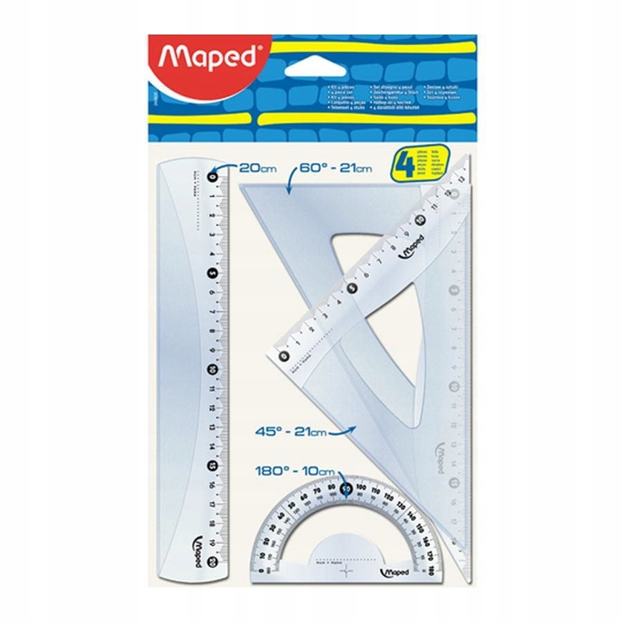Стартовый набор: средняя линейка 20 см, 2 набора угольников, транспортир, сумка Maped 242820