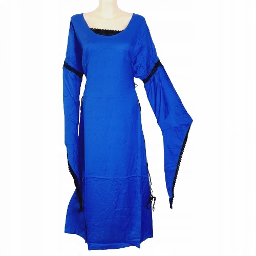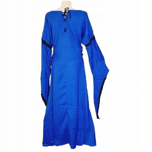 Платье длиной до пола, зашнуровано по бокам. Это позволяет оптимально адаптироваться к форме тела. Красивые широкие рукава-трубы отделаны кружевом по низу и окантовкой на плечах. Горловина также отделана кружевом. Таким образом, костюм Саис является более благородной версией средневекового костюма и по-прежнему подходит для любой средневековой ярмарки или ролевых игр.