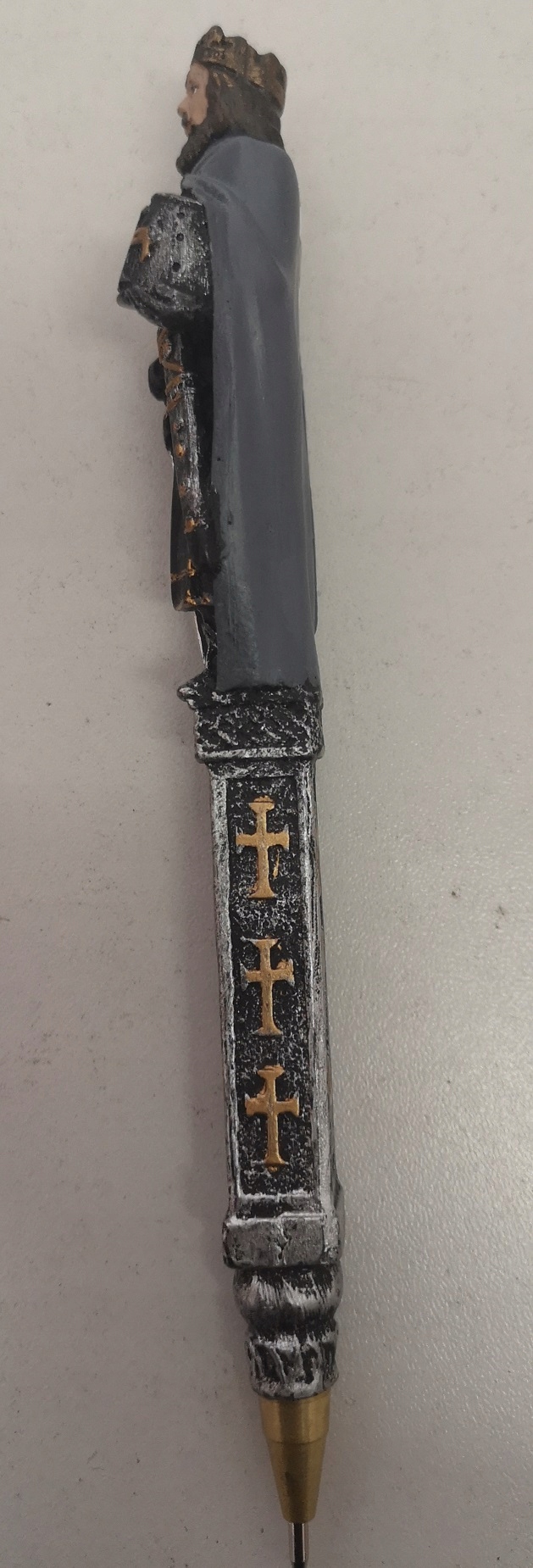 Говорят, что перо сильнее меча, так что представьте себе, какой силой вы будете обладать, подписывая указы (или законопроекты) нашим рыцарским пером! Эта высококачественная дизайнерская ручка из смолы расписана вручную в полноцветную краску для дополнительного эффекта; сохраняйте порядок с нашей подставкой для ручек «Шлем рыцарей-тамплиеров».