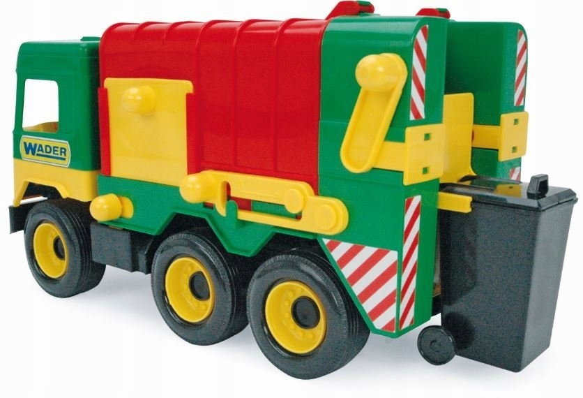 Грузовик с мусором - игрушка для детей? У малышей не хватает поклонников этих транспортных средств, и средний грузовик станет мечтой для них. мусорный грузовик Wader, характеризующийся очень хорошим дизайном и высокой прочностью. У транспортного средства есть много движущихся элементов, которые будут диверсифицировать веселье, например, контейнер с мусором и открывающаяся задняя дверь. Игрушка очень красочная и сделана из пластика высочайшего качества.