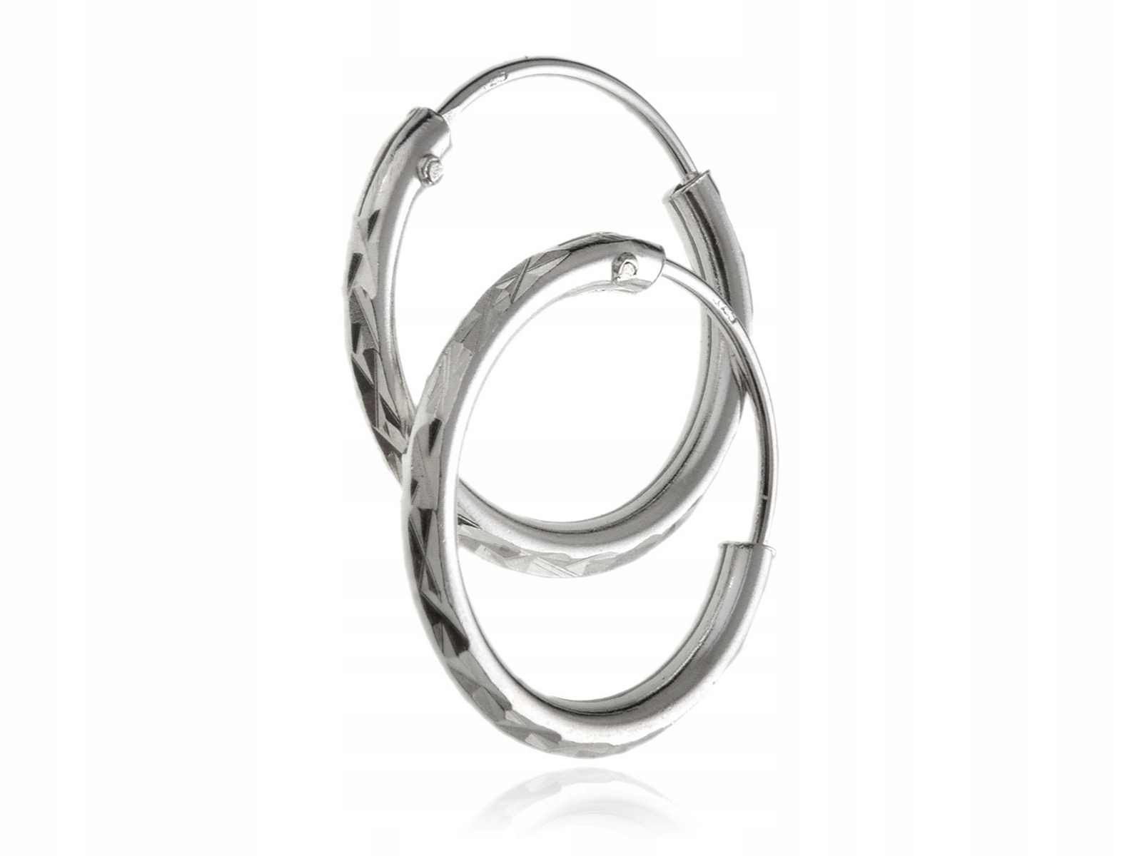 Серьги-кольца из серебра 925 пробы. Серьги украшены ромбовидным узором, который красиво отражает свет. Классический дизайн всегда в моде. За украшениями легко ухаживать, можно использовать домашние методы чистки, например. зубная паста (без гранул).