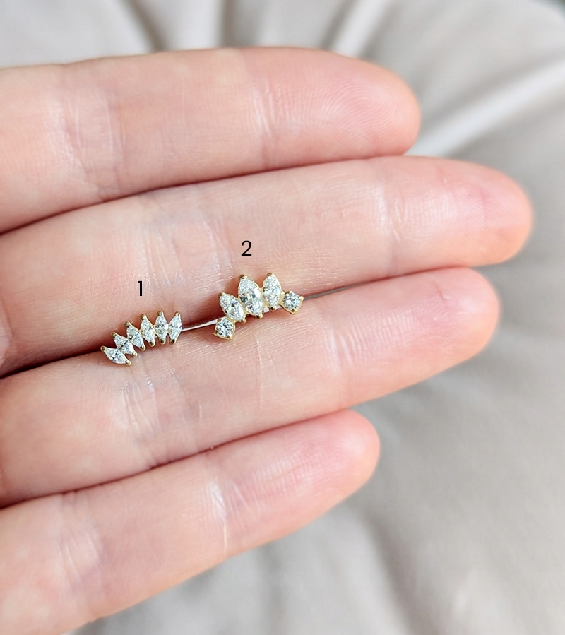 СЕРЕЖКА-ЛАБРЕТ З ТИТАНУ ЗОЛОТА СВІТРІ ВУХА З 5 ЦИРКОНІЯМИ 1,2/8