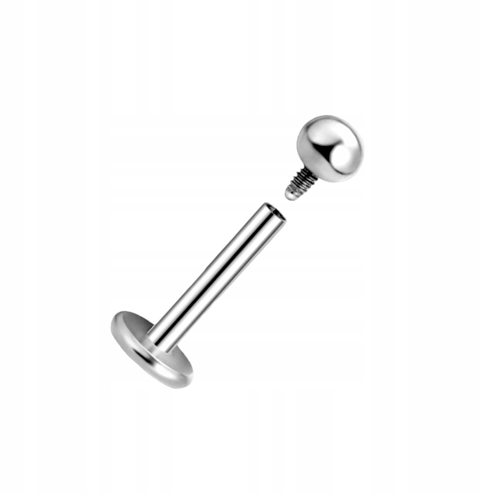 Серебряная губная серьга с шариком из хирургической стали 316L с внутренней резьбой размером 1,2/8/3
