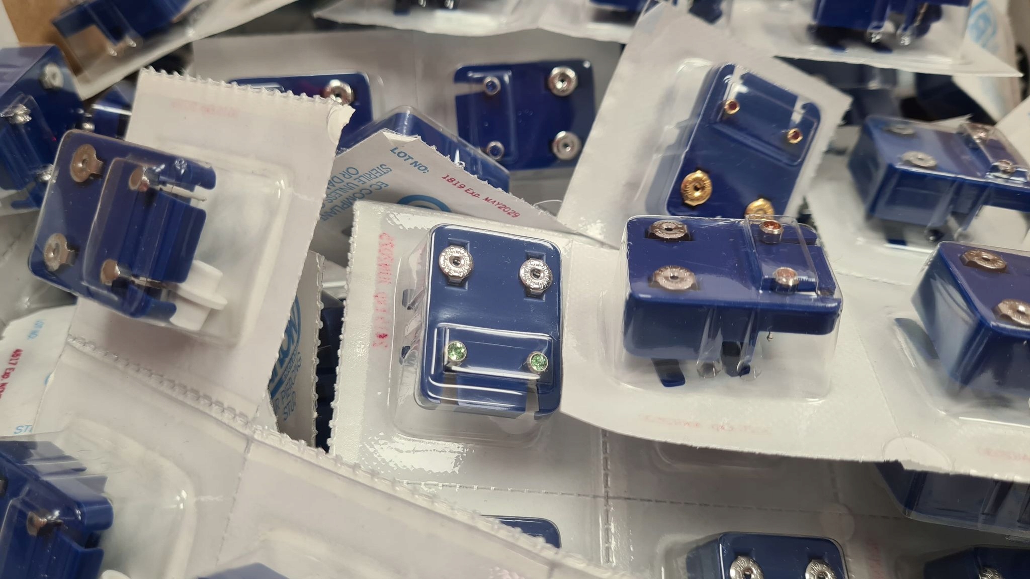 Стерильные вкладыши для прокола ушей. Изготовлен из гипоаллергенной хирургической стали. Продукция имеет сертификат стерилизации, сертификат качества ISO 9002, заключения европейских санитарно-эпидемиологических институтов, соответствует директивам ЕС для данного вида продукции.