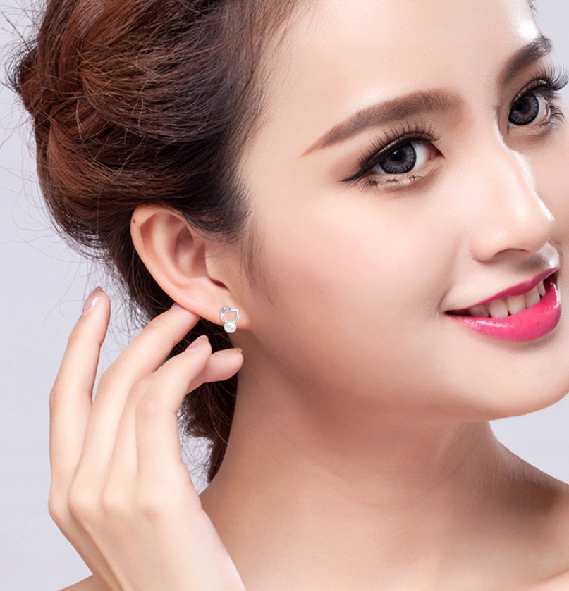 Серьги для девочек Hello Kitty милые жемчужные палочки Kitty