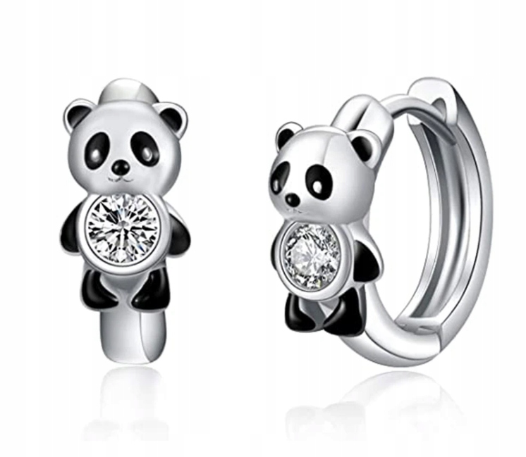 Сережки Для Дівчинки Ведмедик Панда Стрази Срібні Коліщатка