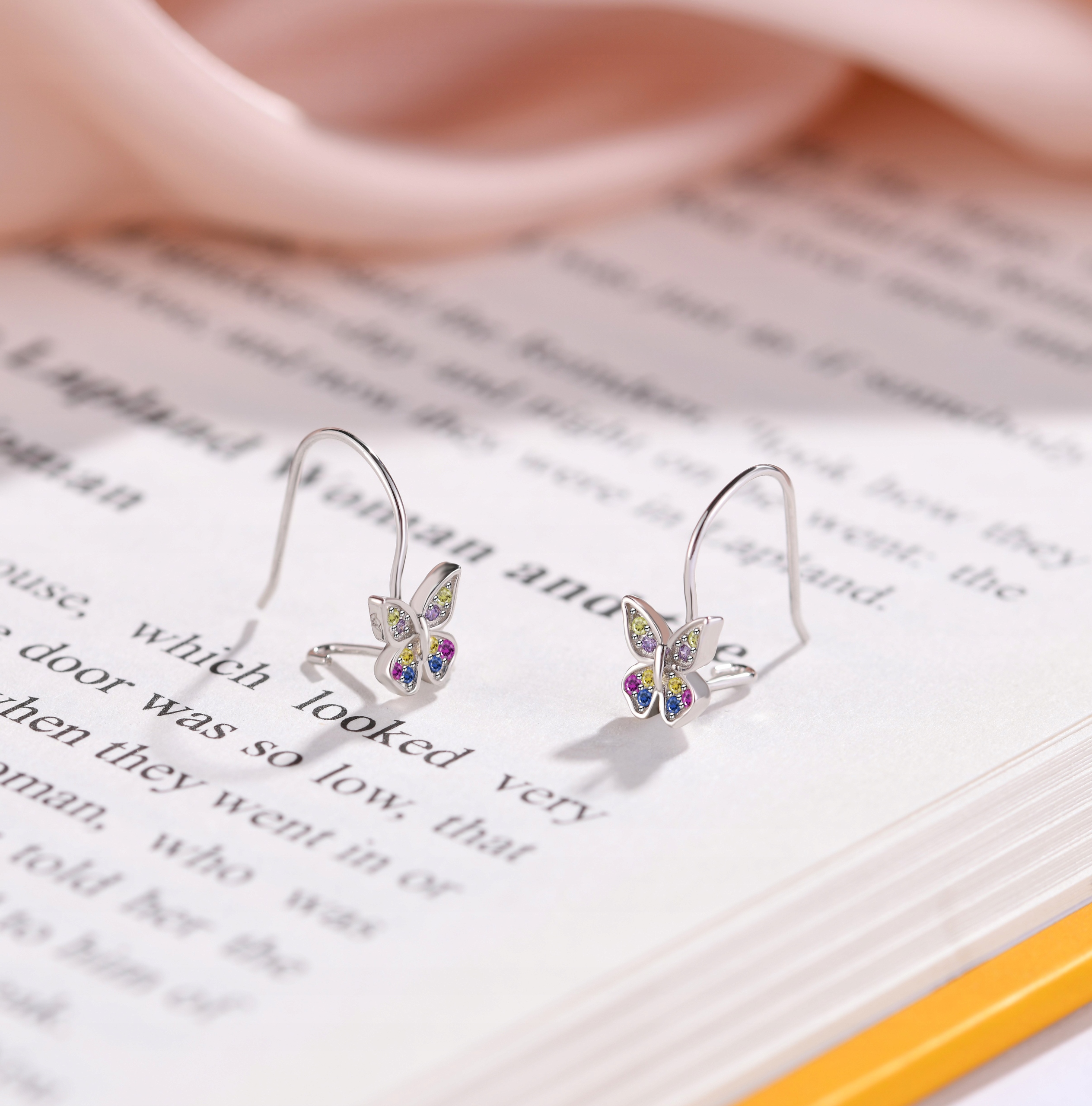 СЕРЕБРЯНЫЕ РАЗНОЦВЕТНЫЕ СЕРЬГИ-БАБОЧКИ ДЛЯ ДЕВОЧКИ