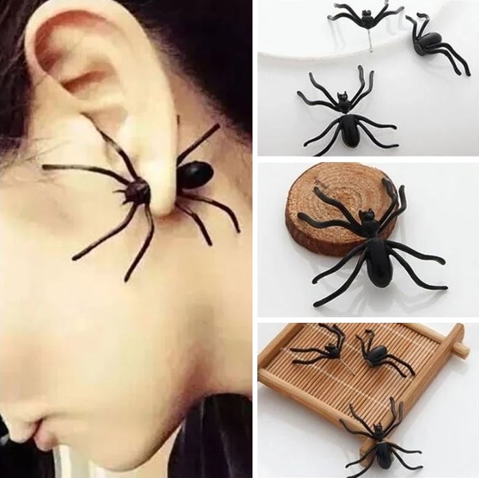 СЕРЬГИ-ШПИЛЬКИ 3D КОСТЮМ ЧЕРНОГО ПАУКА ПАУКОВ ПЛАТЬЕ НА ХЭЛЛОУИН
