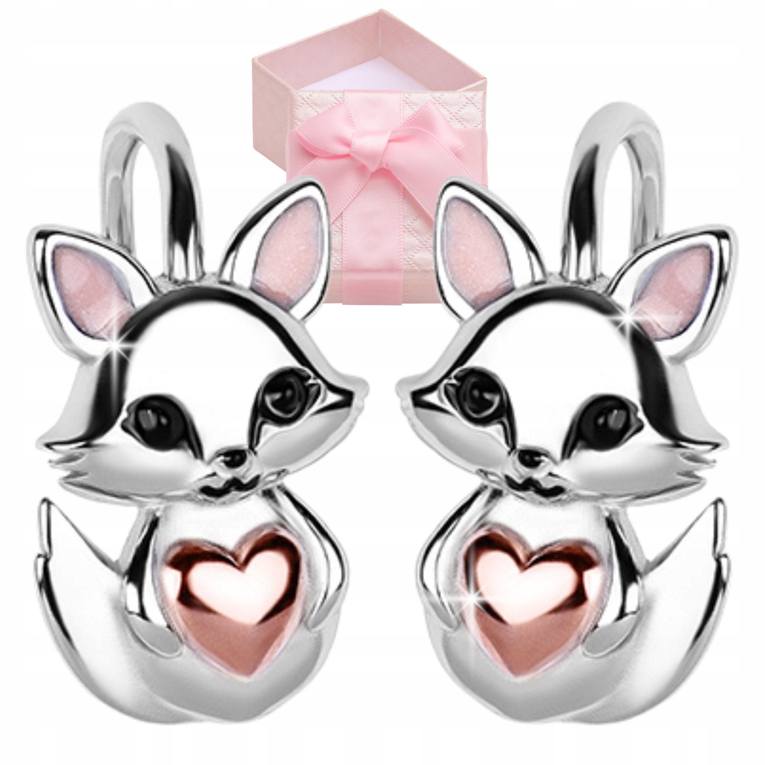Красивые серьги с лисой для девочек, изготовленные из серебра высочайшего качества с родиевым покрытием. 925 проба, покрытие розовым золотом.