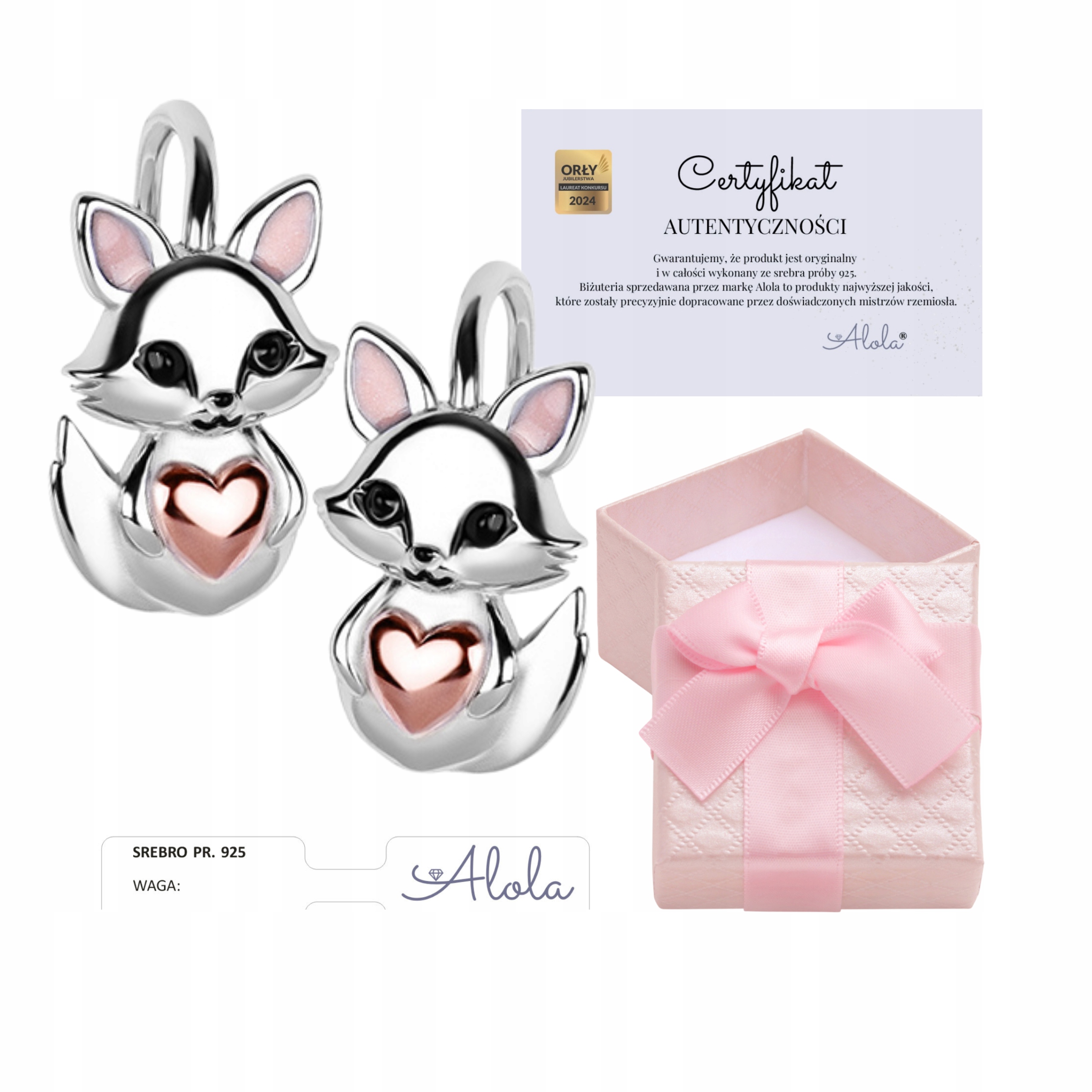 АНГЛИЙСКИЕ СЕРЕБРЯНЫЕ СЕРЬГИ ДЛЯ ДЕВУШКИ ЛИСИКИ С СЕРДЦЕМ ЗОЛОТАЯ РОЗА
