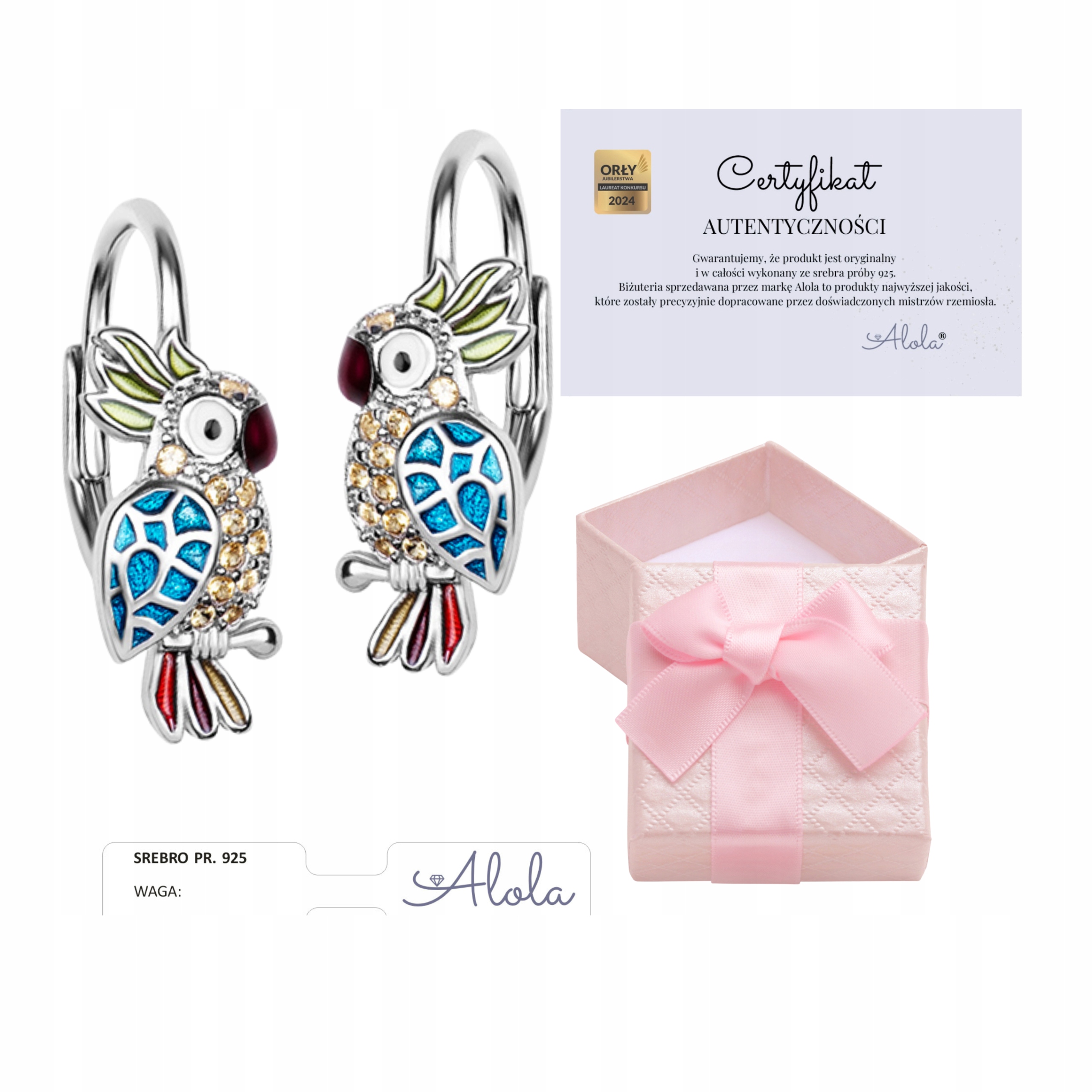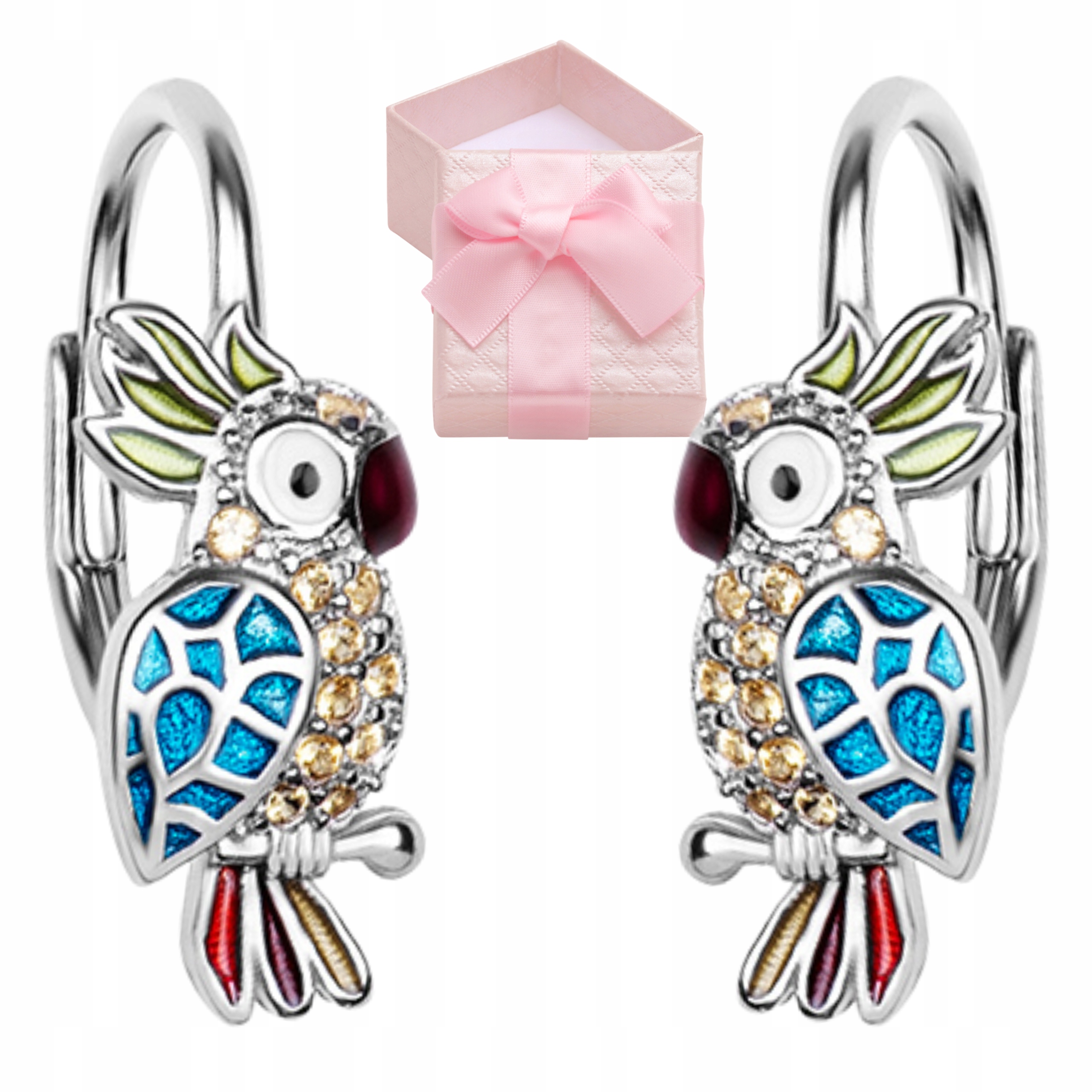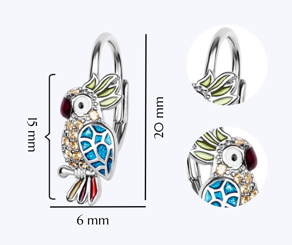 Красивые серьги для попугая, изготовленные из самого высокого качества rhodium silver, pr. 925, покрыто красочной эмалью и блестящими цирконами.