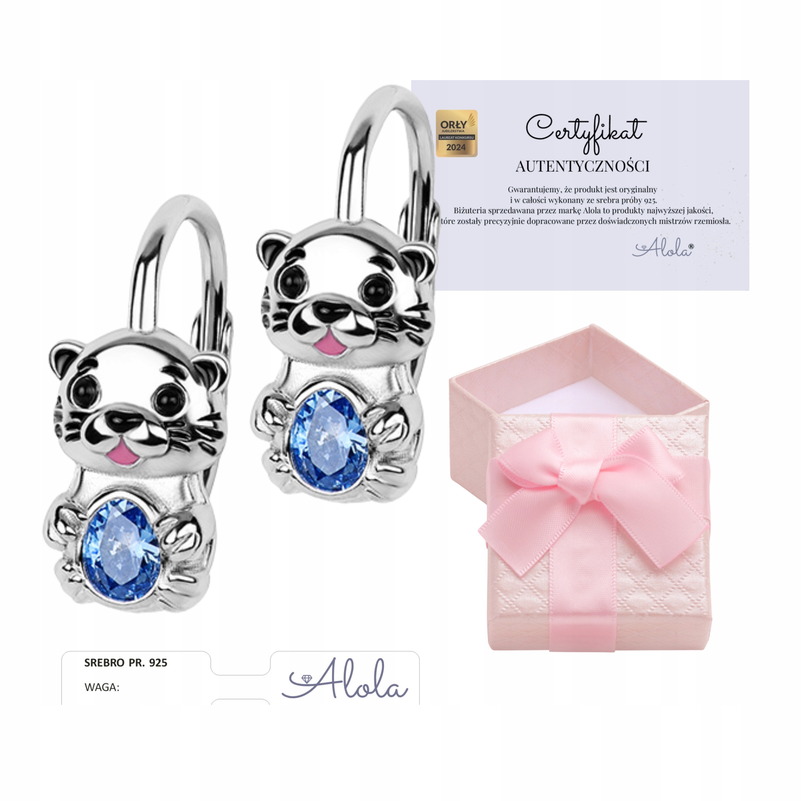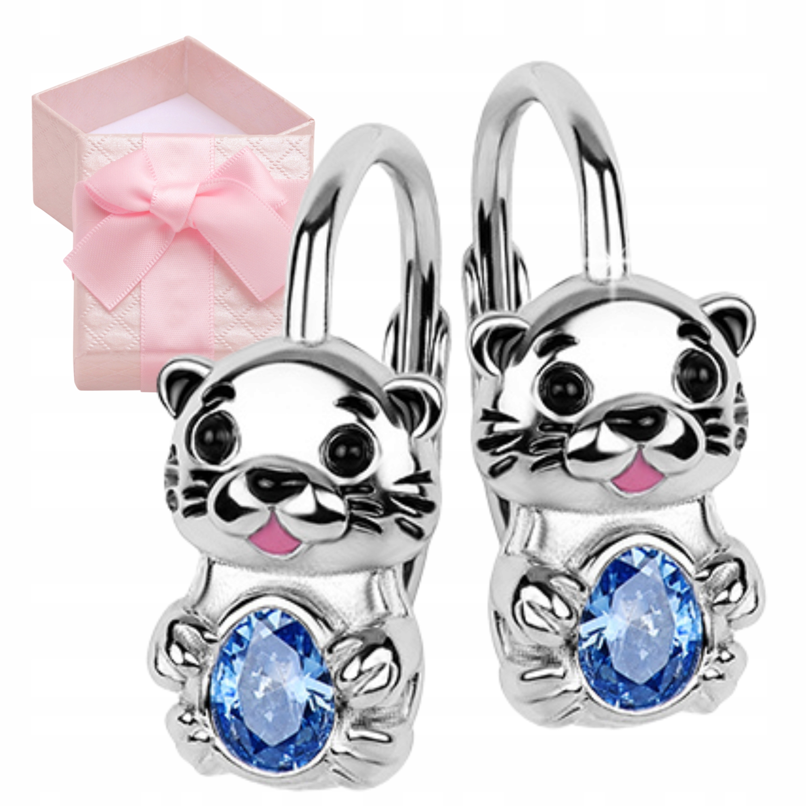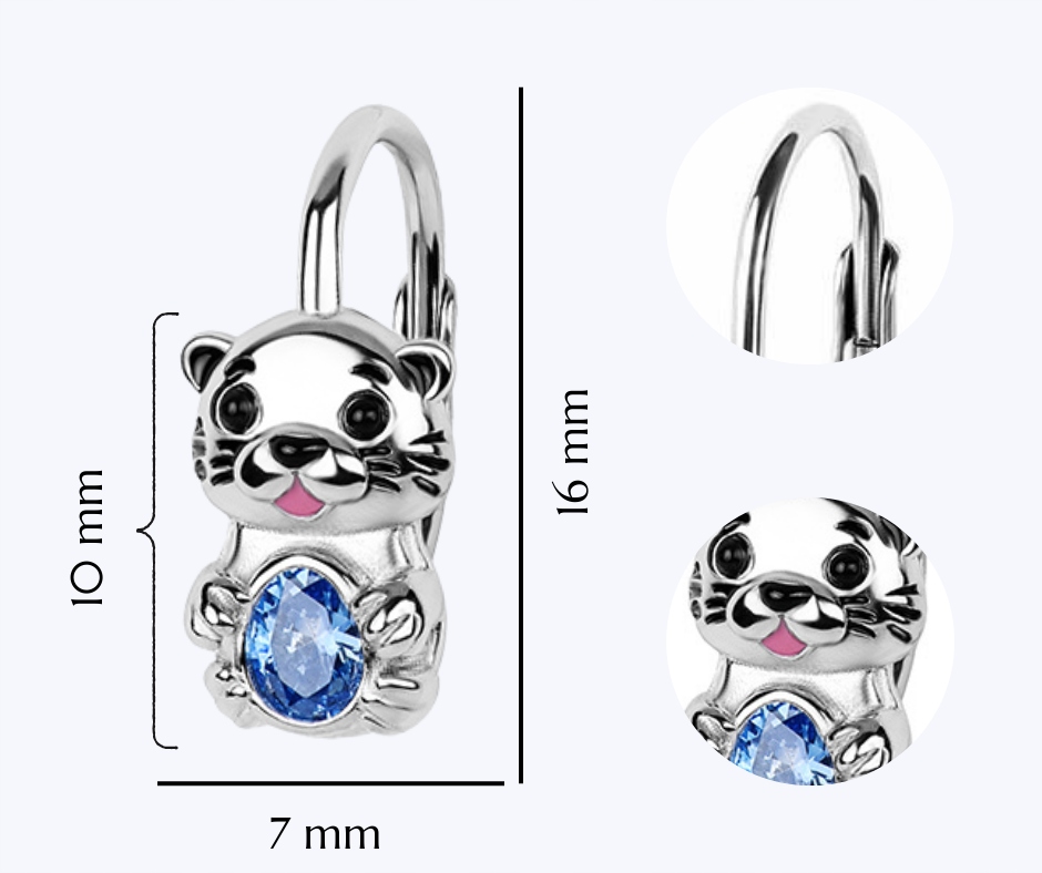 ДЕТСКИЕ СЕРЕБРЯНЫЕ СЕРЬГИ ВЫДРЫ С СИНИМ ЦИРКОНОМ, АНГЛИЙСКИЙ ЗАЖИМ